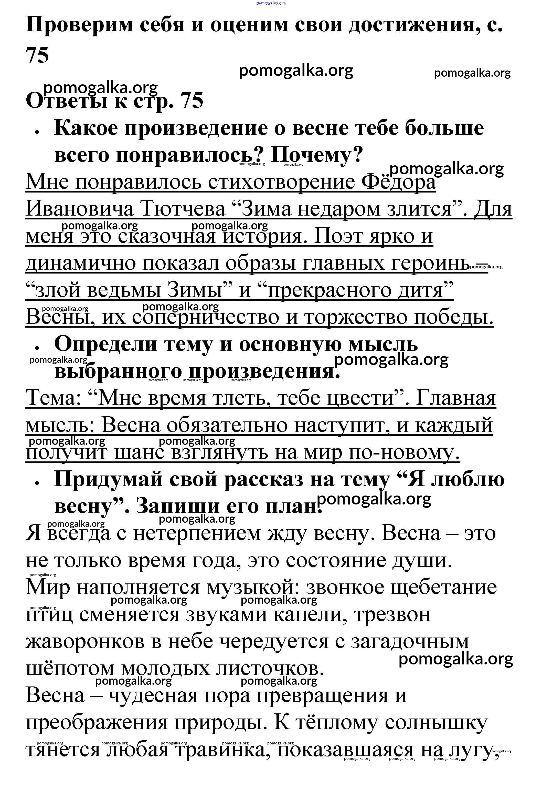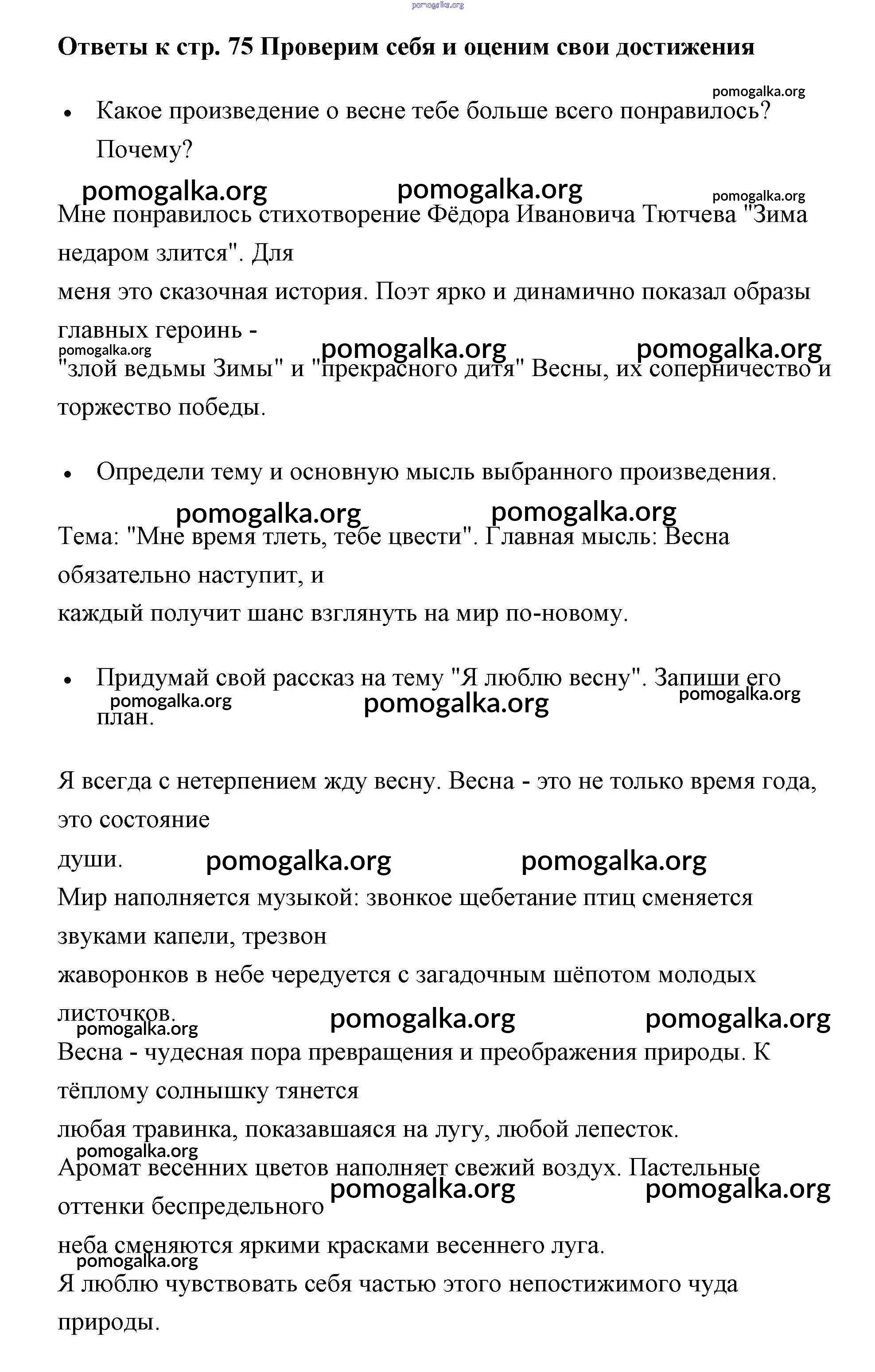 Готовые ответы - Литературное чтение 2 класс рабочая тетрадь Бойкина - страница 75