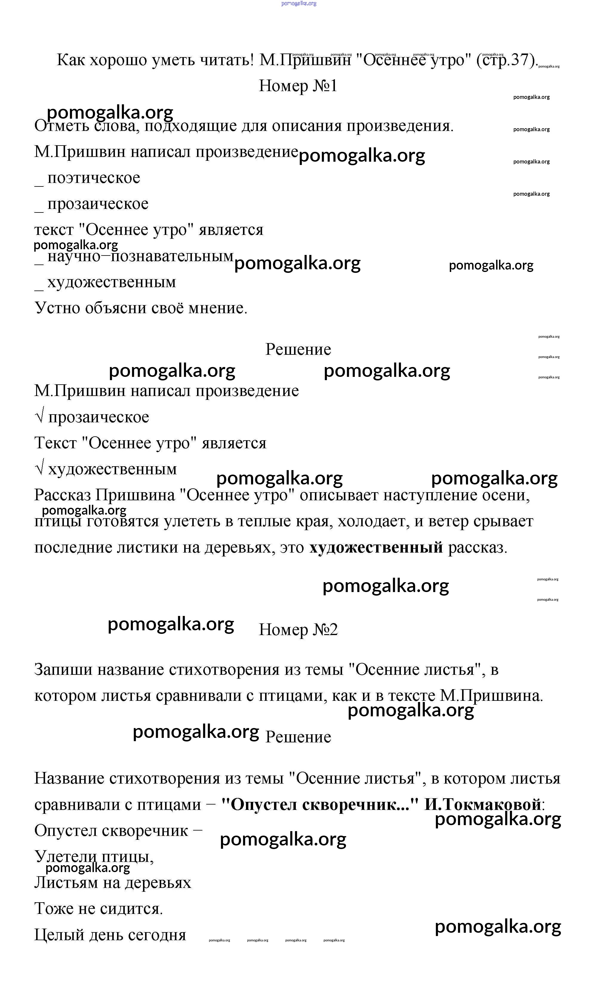 Готовые ответы - Литературное чтение 2 класс рабочая тетрадь Тихомирова в 2-х частях - часть 1 (страница) 37
