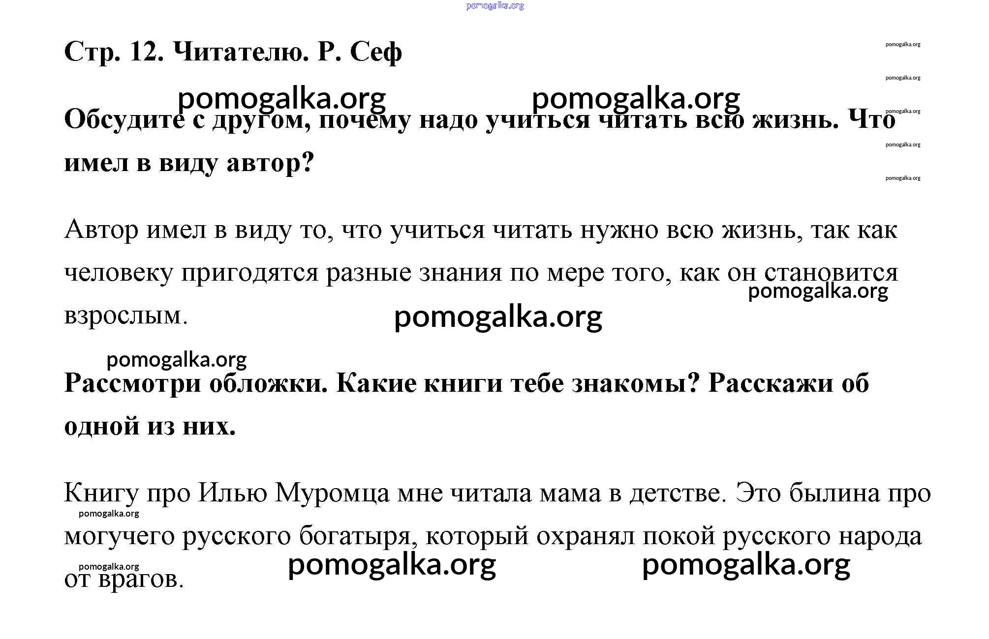 Готовые ответы - Литературное чтение 2 класс Климанова - часть 1. страница 12