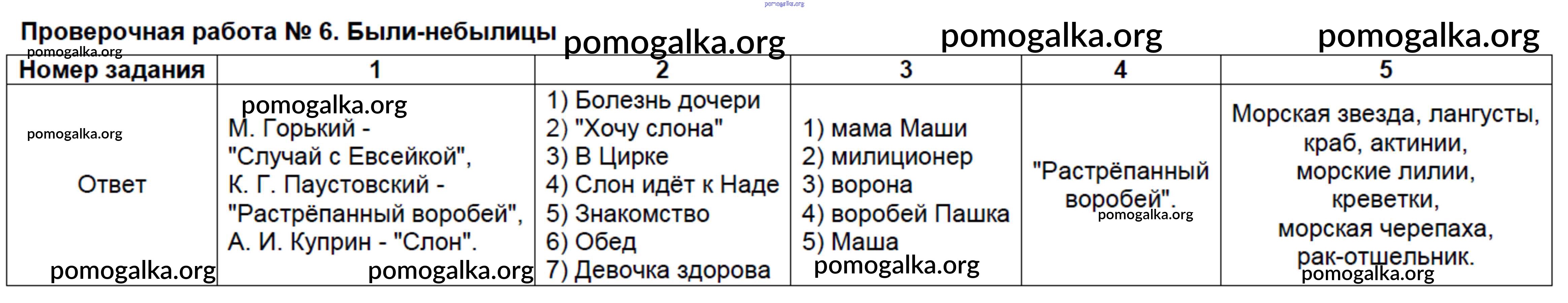 Готовые ответы - Литературное чтение 3 класс контрольно-измерительные материалы Шубина Г.В. - проверочная работа 6