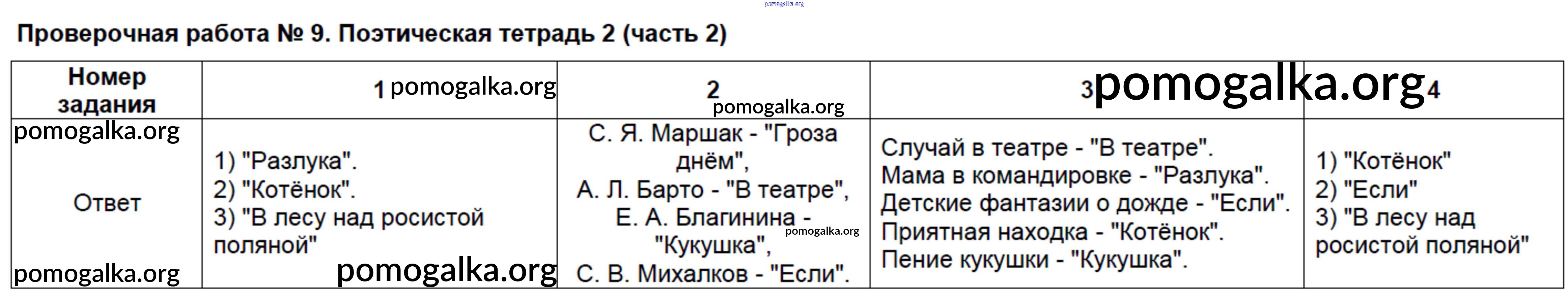 Готовые ответы - Литературное чтение 3 класс контрольно-измерительные материалы Шубина Г.В. - проверочная работа 9