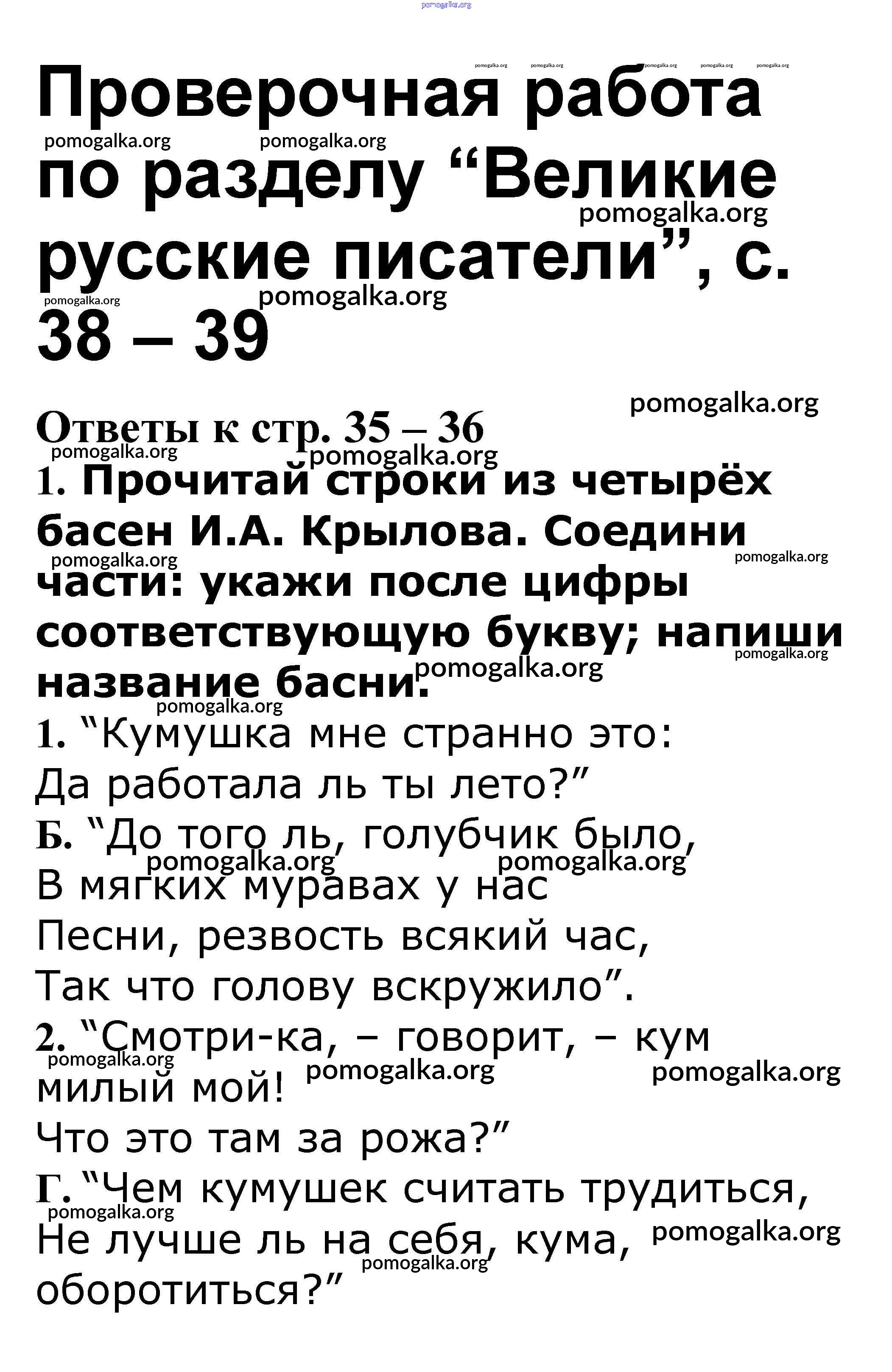 Готовые ответы - Литературное чтение 3 класс рабочая тетрадь Кутявина С.В. - страница 38-39