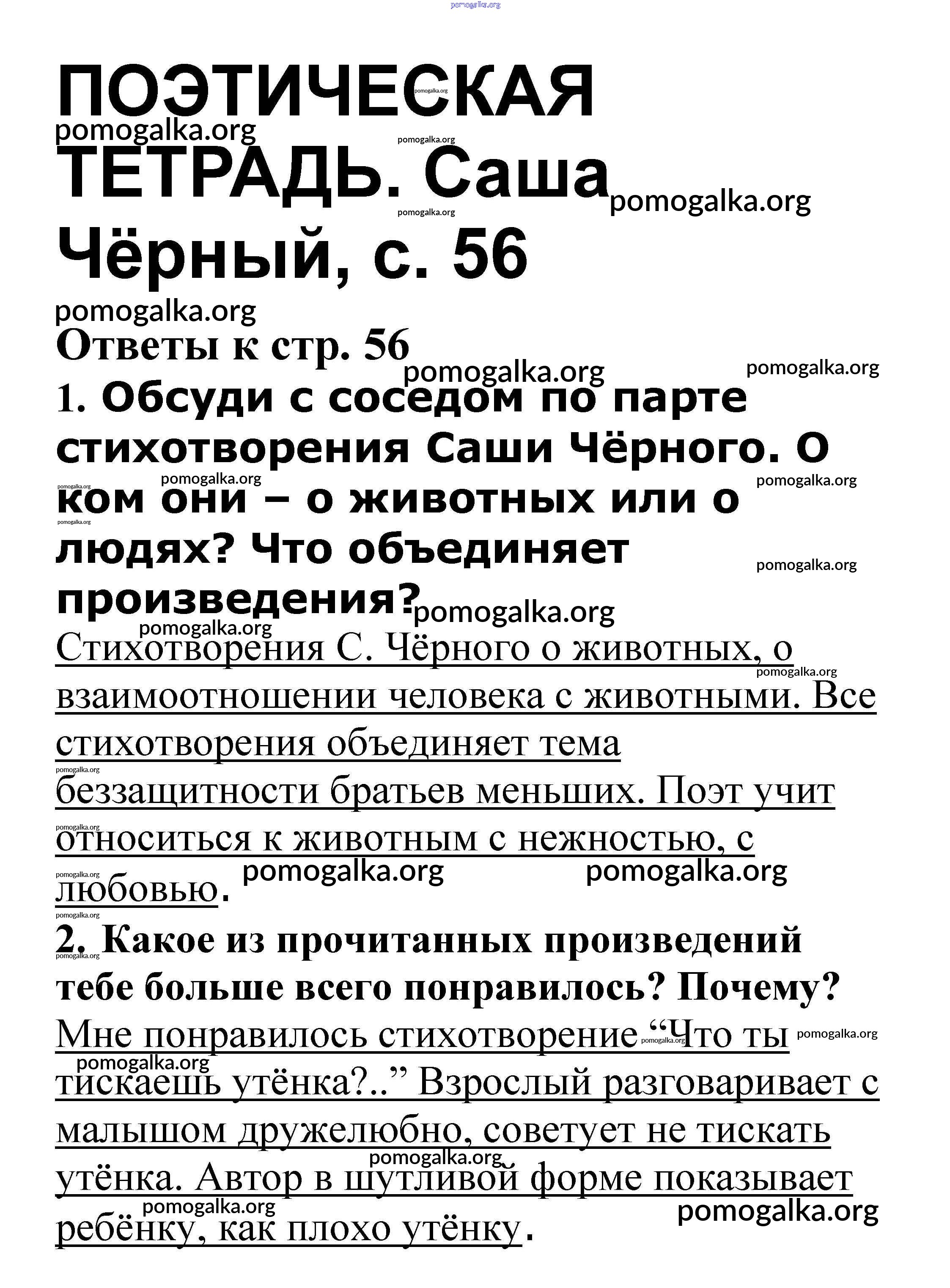 Готовые ответы - Литературное чтение 3 класс рабочая тетрадь Кутявина С.В. - страница 56
