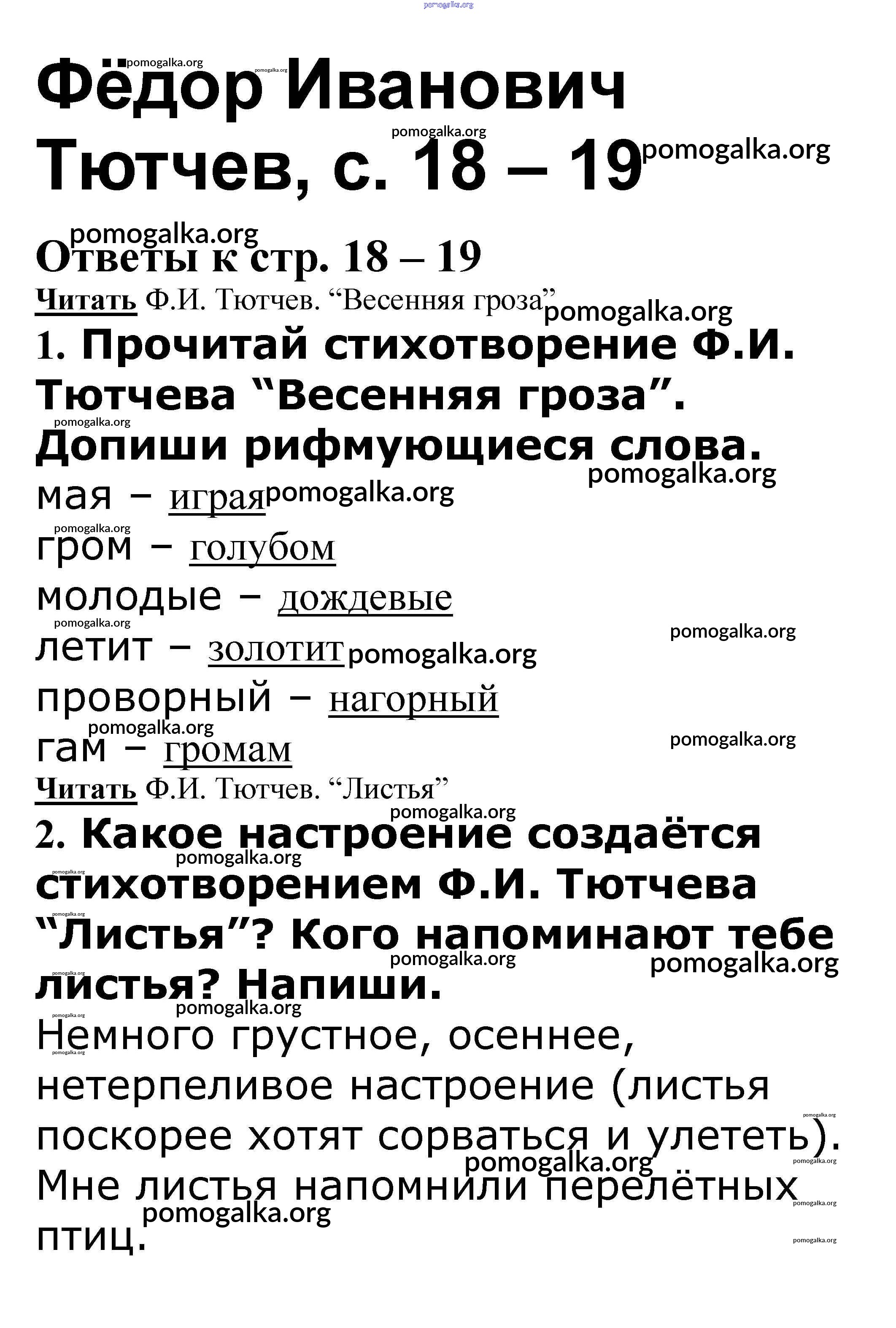Готовые ответы - Литературное чтение 3 класс рабочая тетрадь Кутявина С.В. - страница 18-19