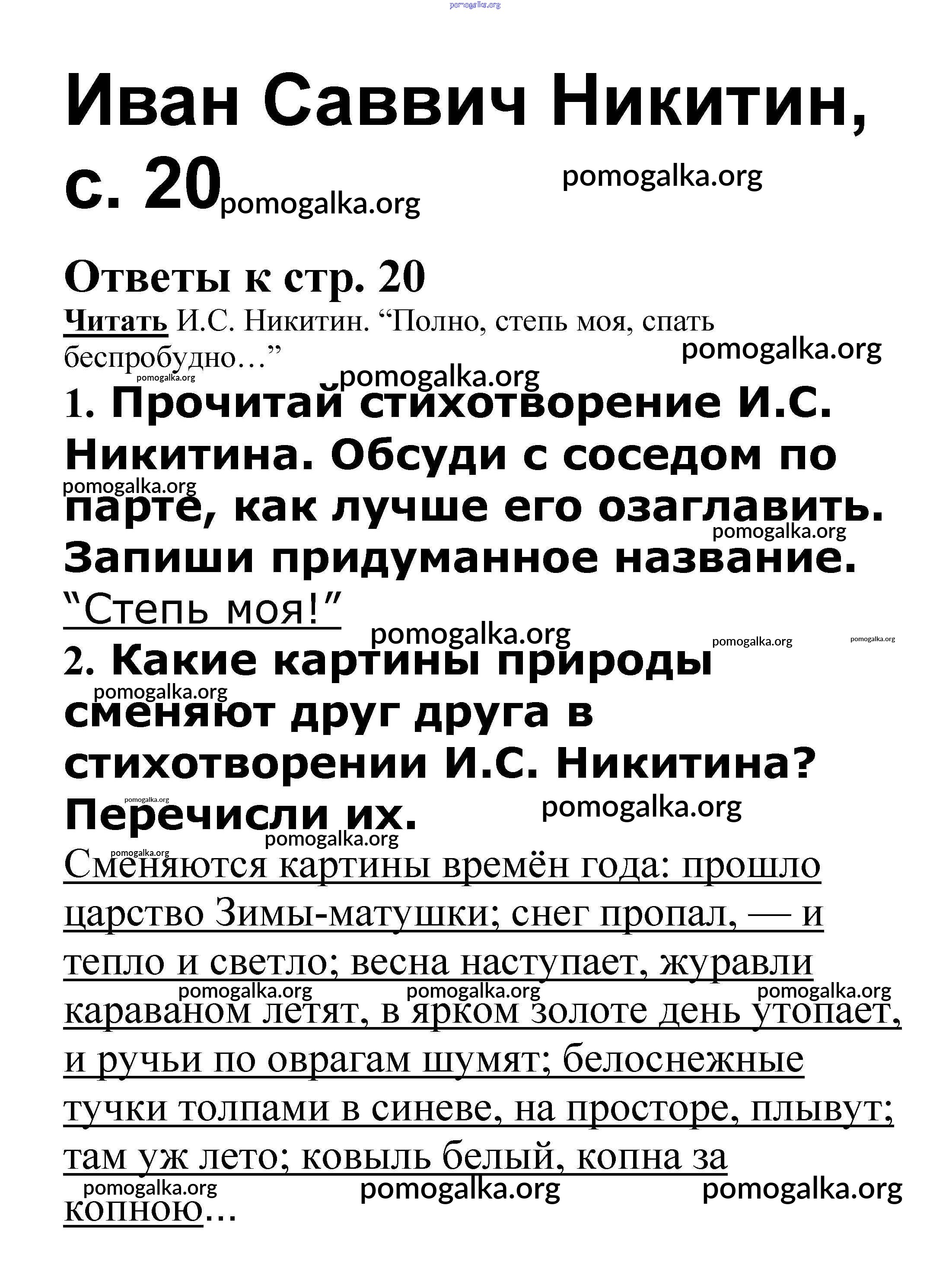 Готовые ответы - Литературное чтение 3 класс рабочая тетрадь Кутявина С.В. - страница 20