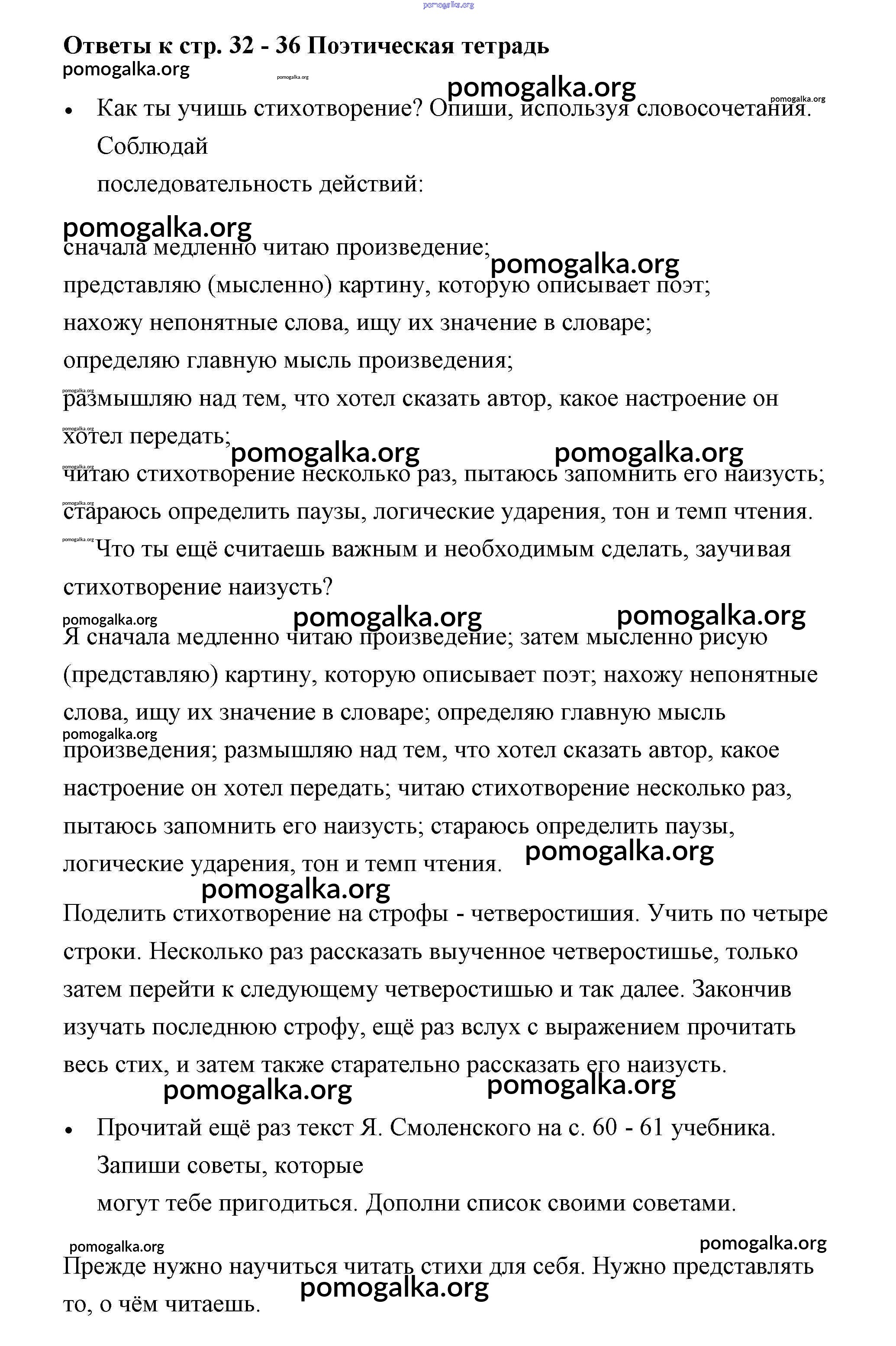 Готовые ответы - Литературное чтение 3 класс рабочая тетрадь Виноградская - страница 32-36