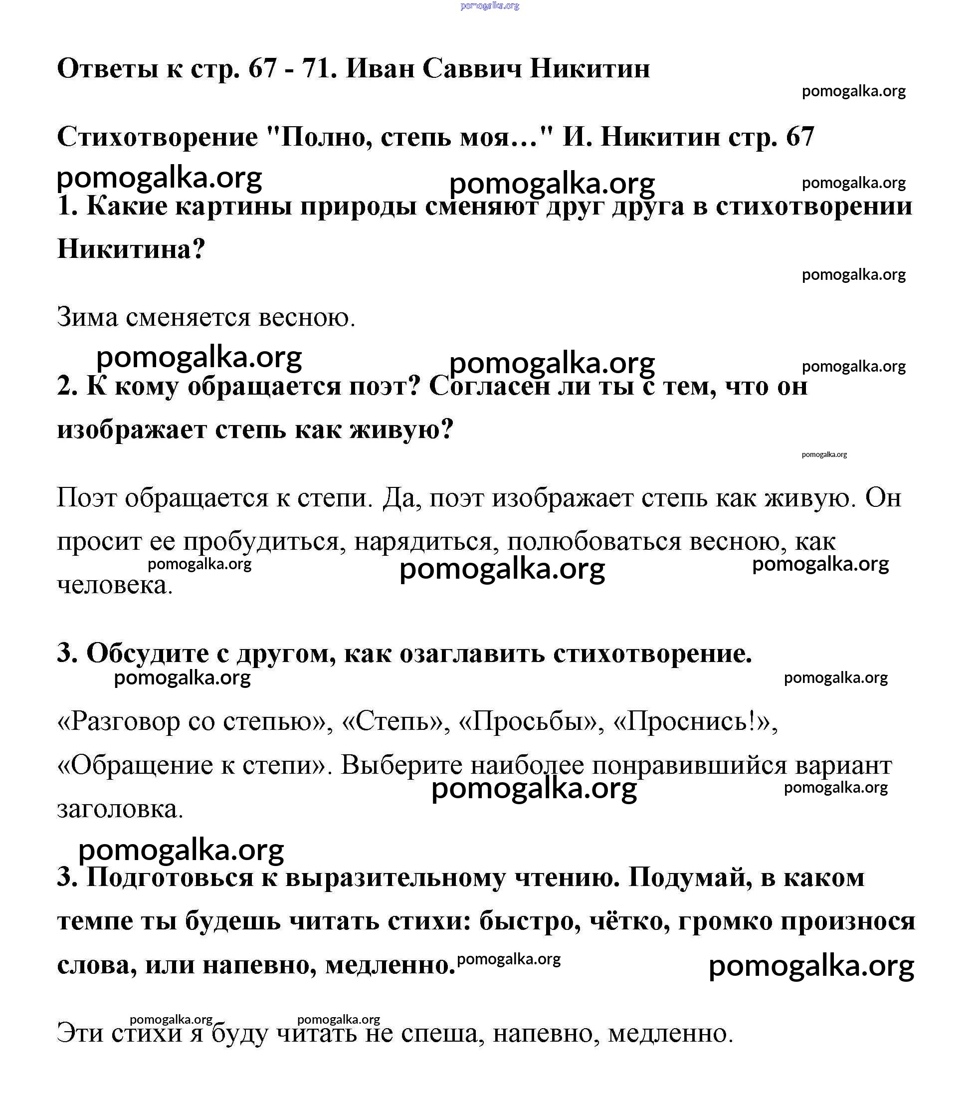 Готовые ответы - Литературное чтение 3 класс Климанова - часть 1 (страница) 67-71