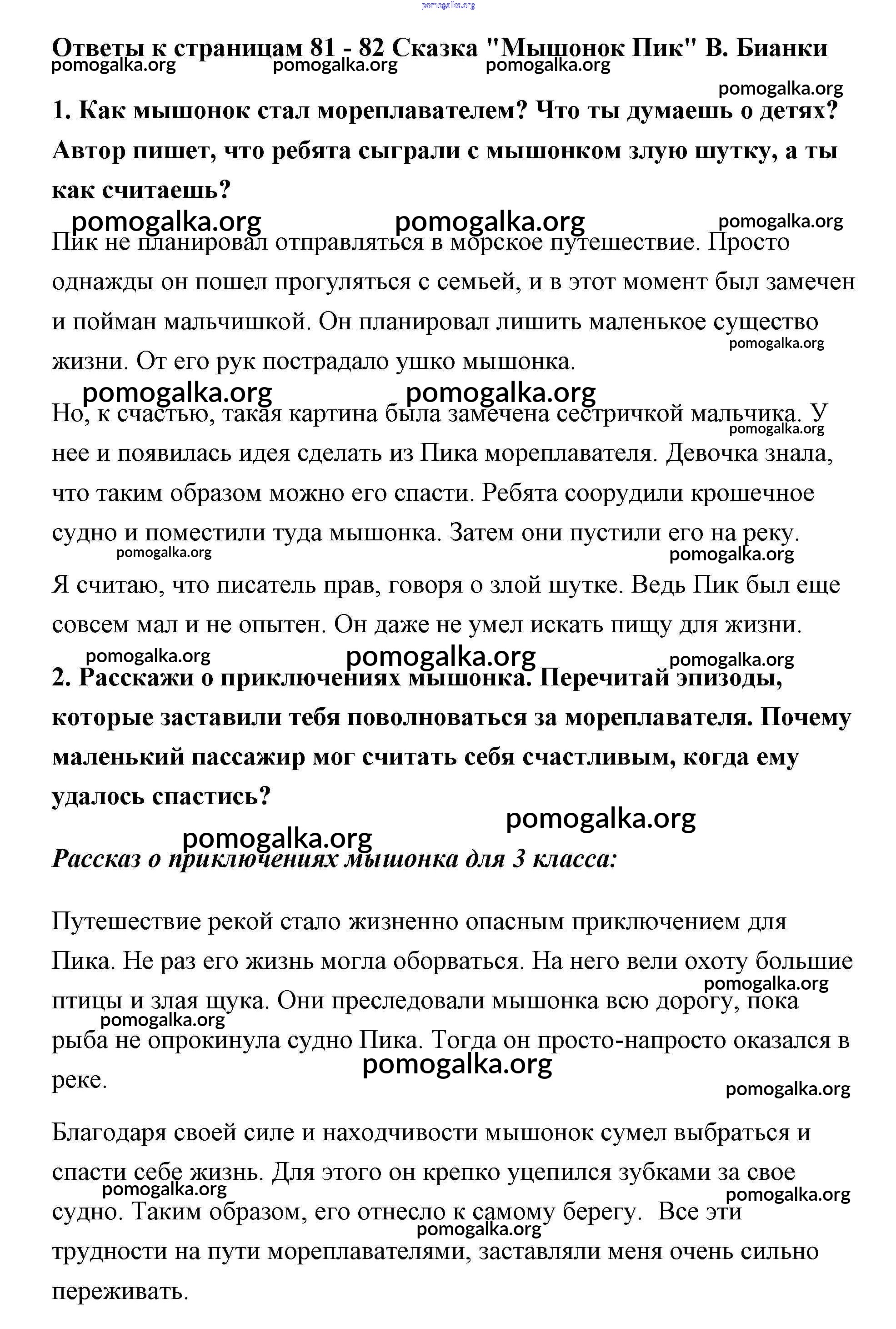Готовые ответы - Литературное чтение 3 класс Климанова - часть 2 (страница) 81-82