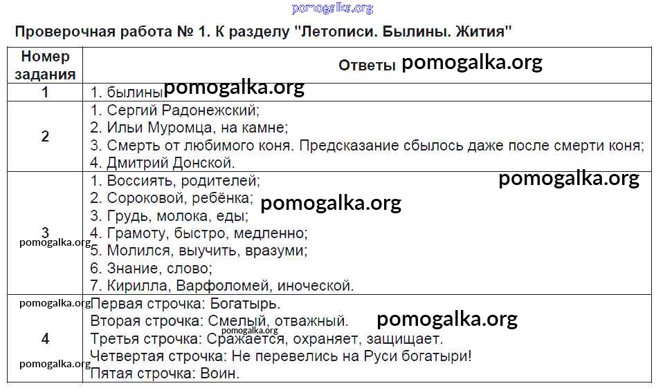 Готовые ответы - Литературное чтение 4 класс контрольно-измерительные материалы (КИМ) Кутявина С.В. - проверочная работа ПР-1