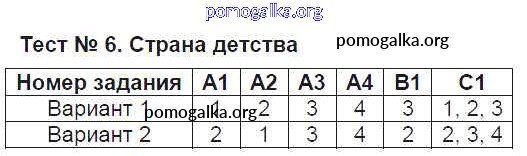 Готовые ответы - Литературное чтение 4 класс контрольно-измерительные материалы (КИМ) Кутявина С.В. - тест Тест №6. Страна детства