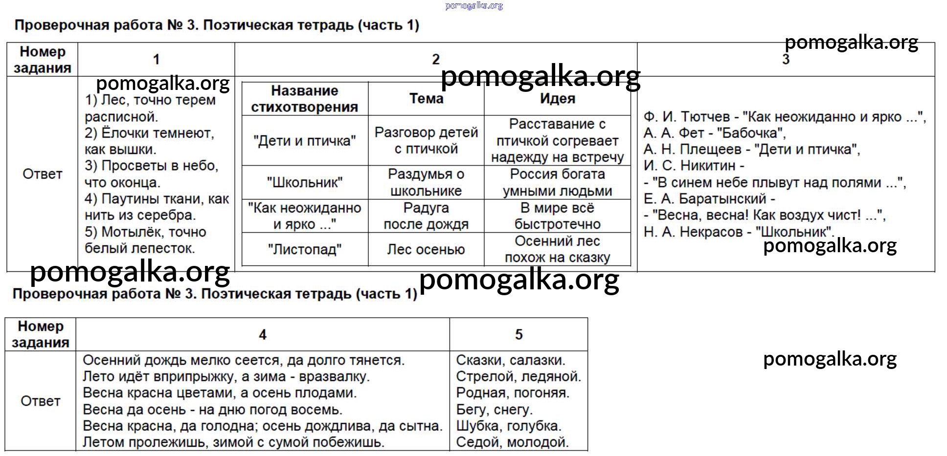Готовые ответы - Литературное чтение 4 класс контрольно-измерительные материалы (КИМ) Шубина Г.В. - проверочная работа ПР-3. Поэтическая тетрадь