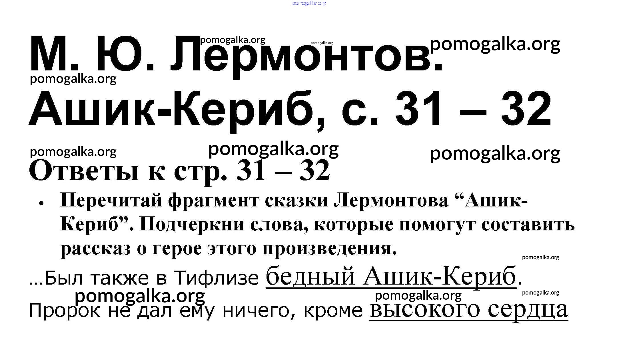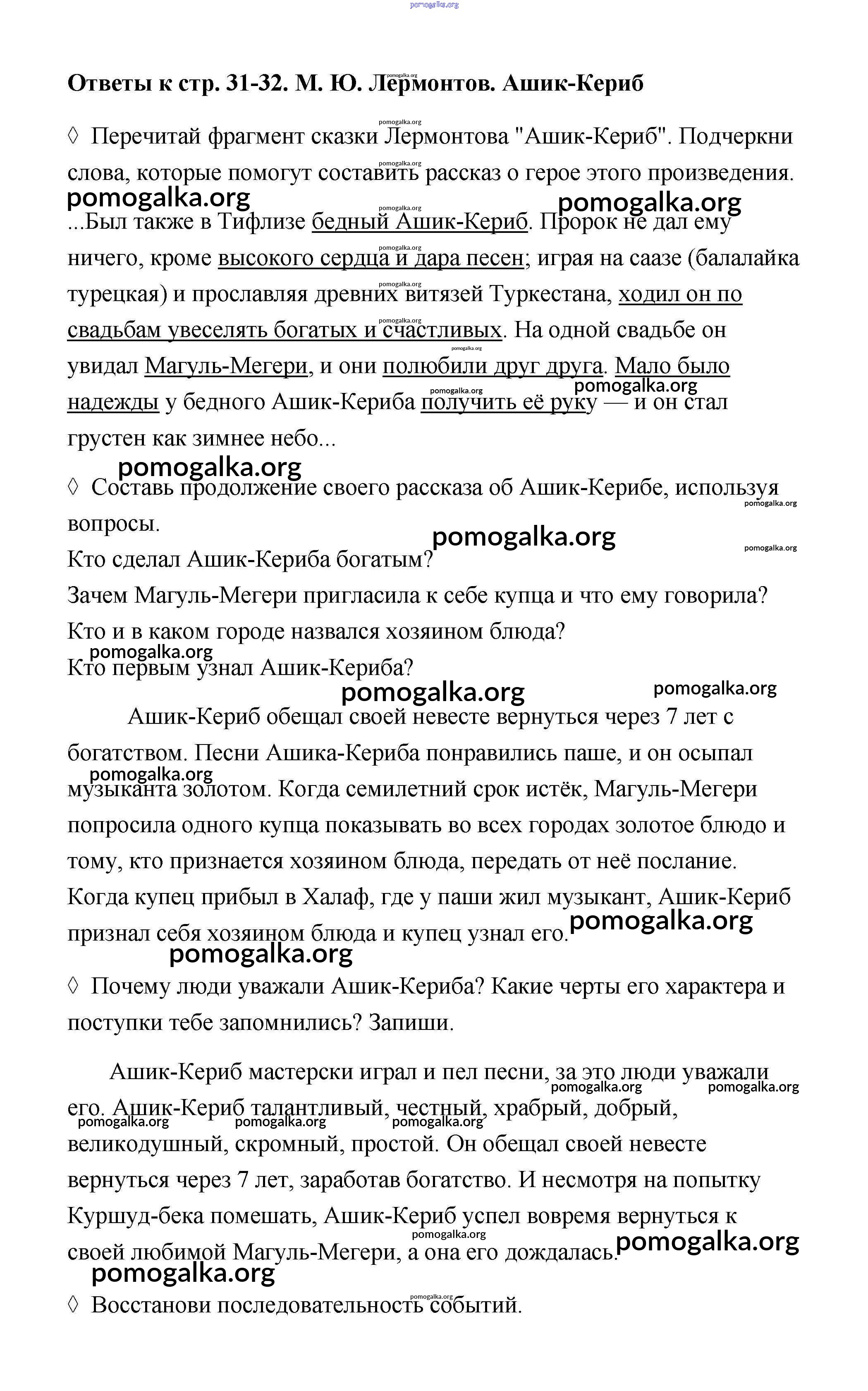 Готовые ответы - Литературное чтение 4 класс рабочая тетрадь Бойкина М.В. - страница 31-32