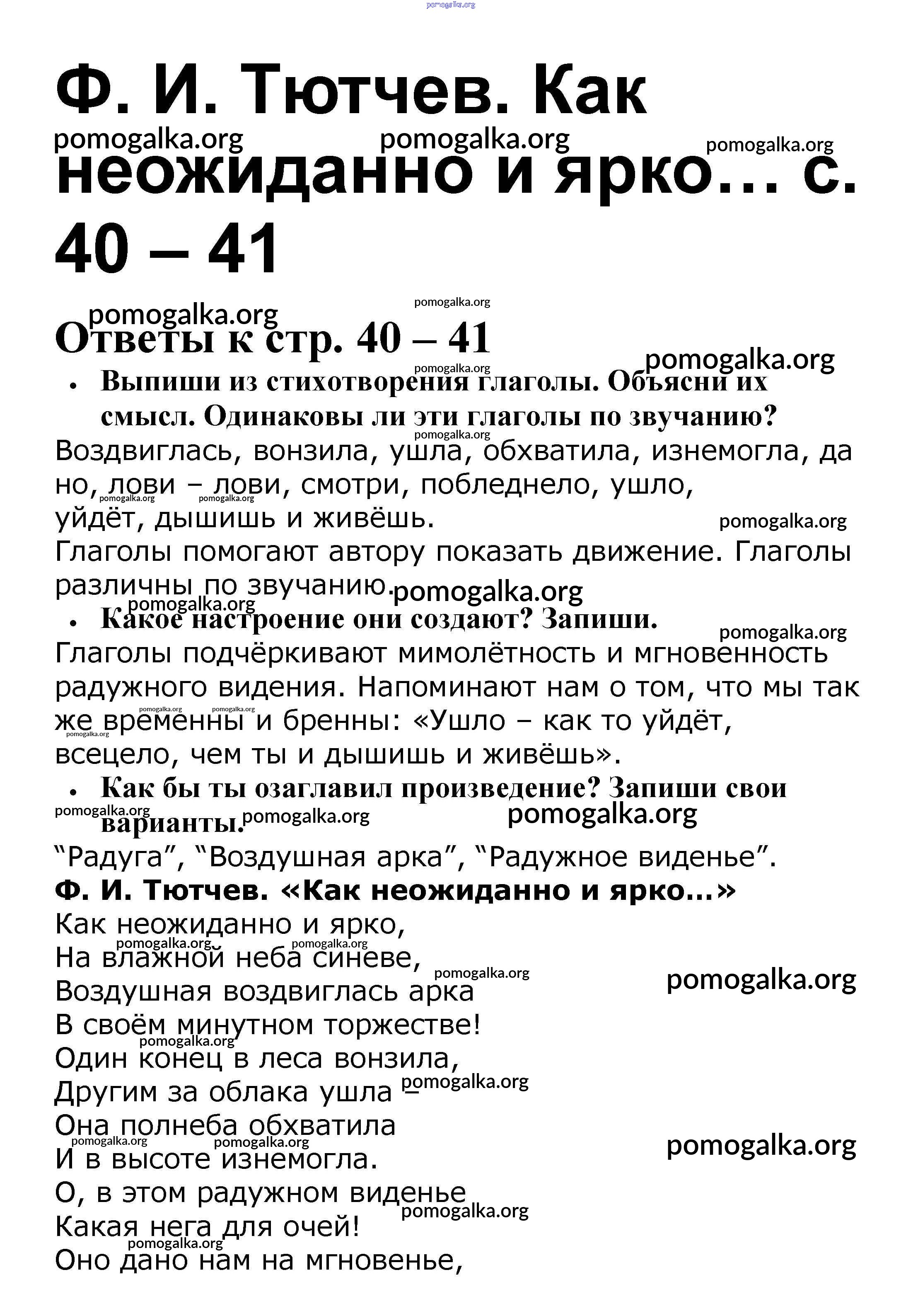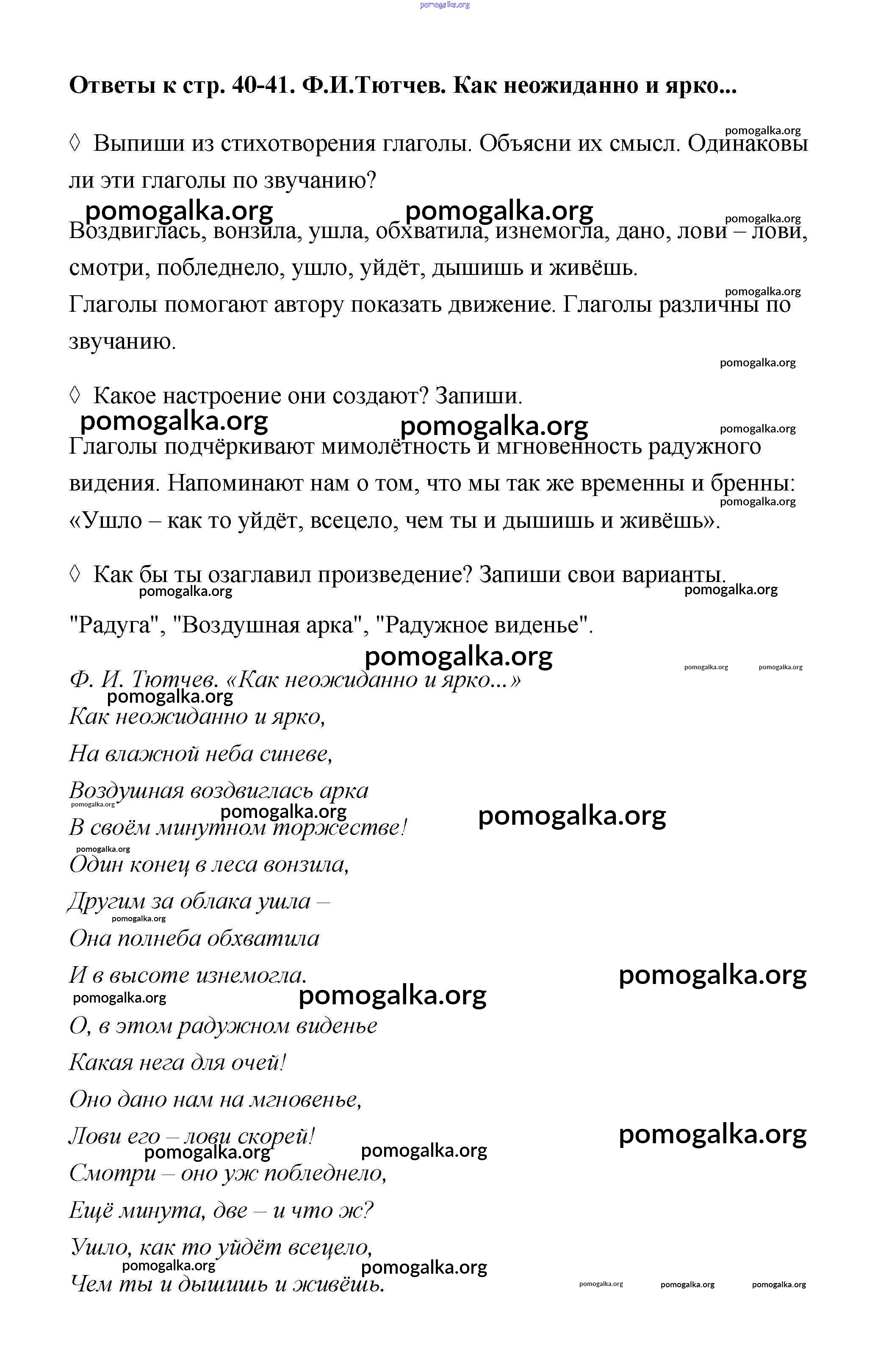 Готовые ответы - Литературное чтение 4 класс рабочая тетрадь Бойкина М.В. - страница 40-41