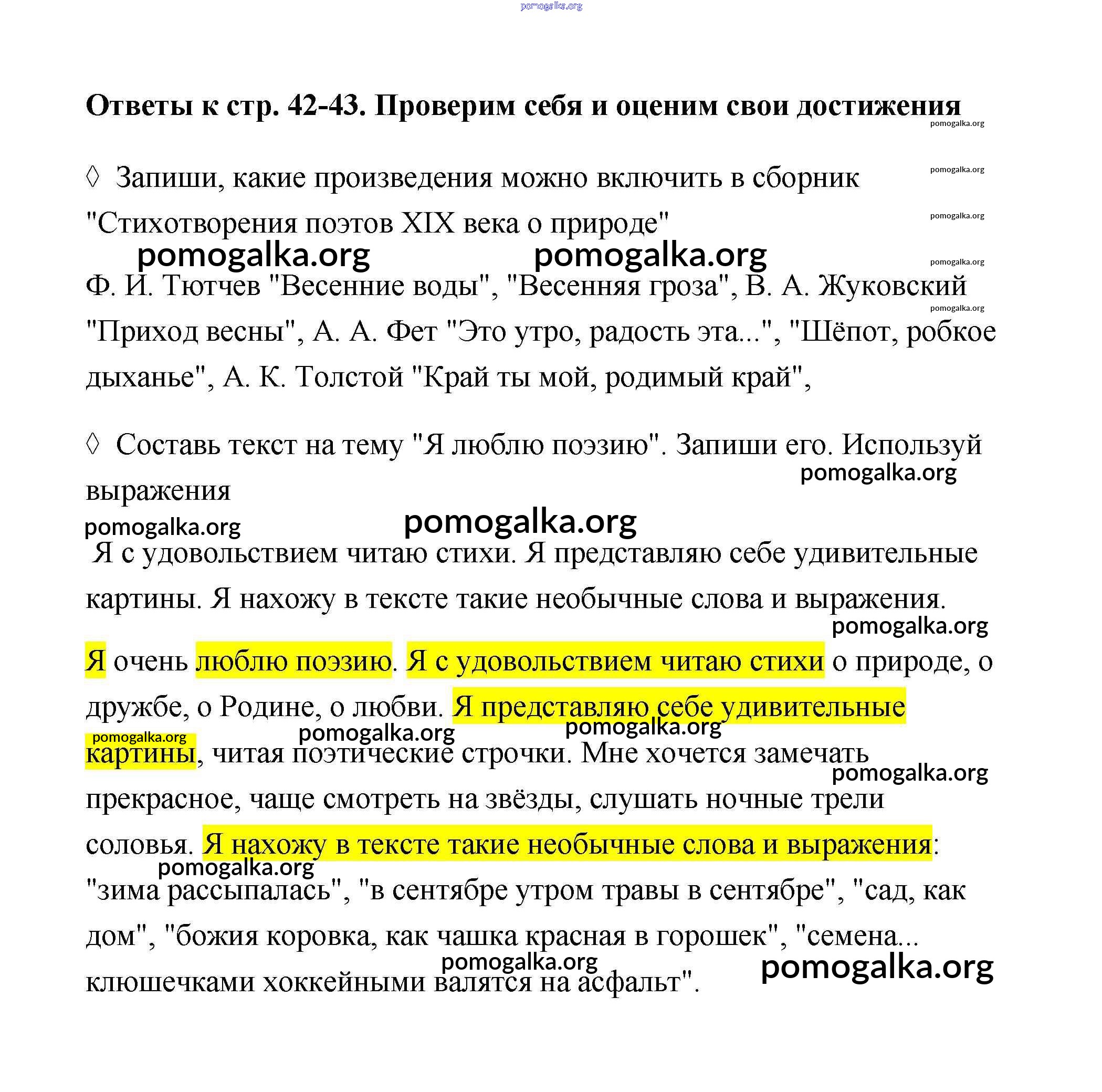 Готовые ответы - Литературное чтение 4 класс рабочая тетрадь Бойкина М.В. - страница 42-43
