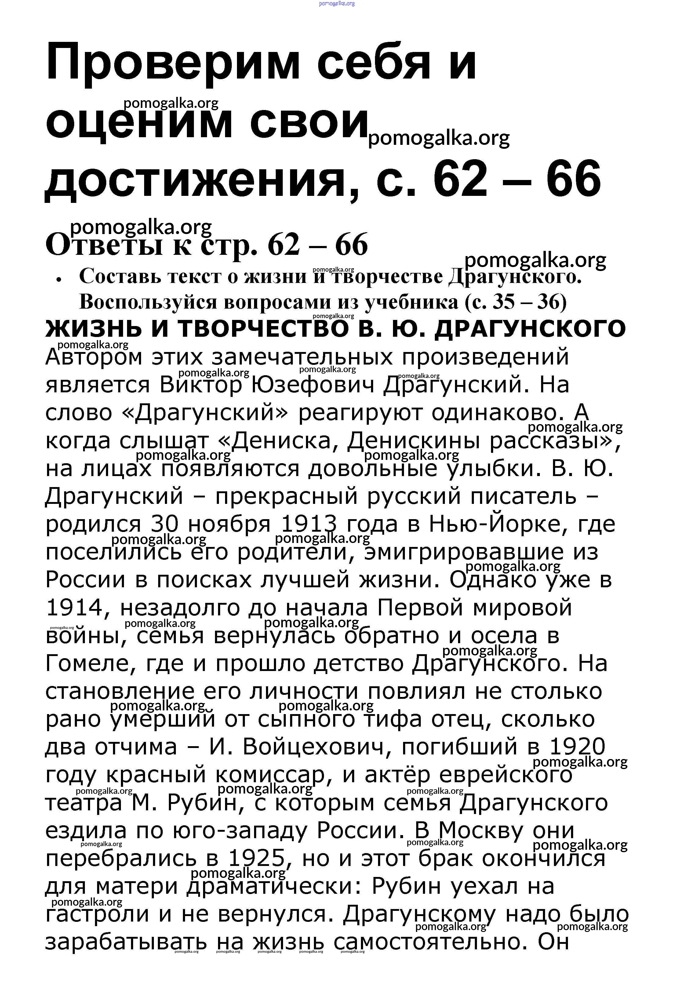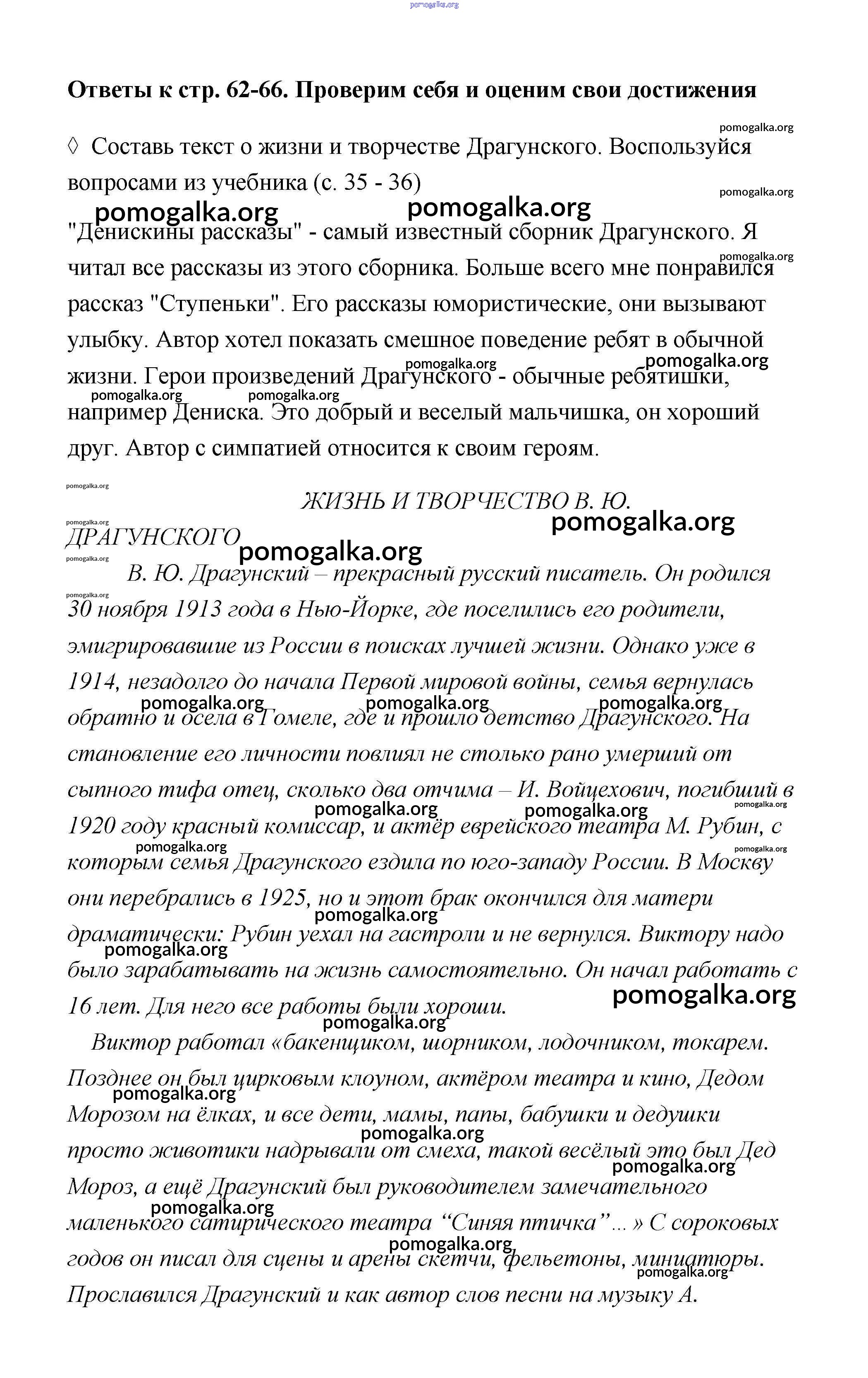 Готовые ответы - Литературное чтение 4 класс рабочая тетрадь Бойкина М.В. - страница 62-66