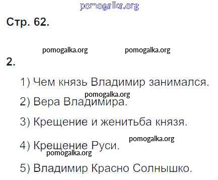 Готовые ответы - Литературное чтение 4 класс рабочая тетрадь Кубасова О.В. - часть 2. страница 62