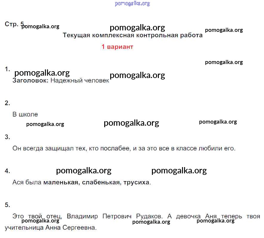 Готовые ответы - Литературное чтение 4 класс тетрадь для контрольных работ Ефросинина Л.А. - часть 1. страница 5