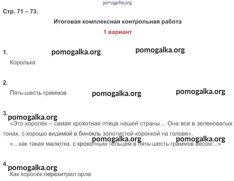 Готовые ответы - Литературное чтение 4 класс тетрадь для контрольных работ Ефросинина Л.А. - часть 1. страница 71