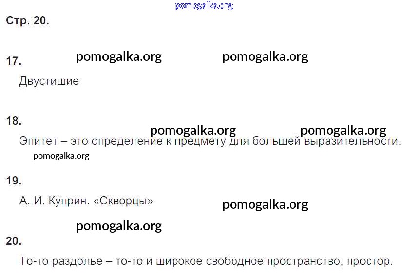 Готовые ответы - Литературное чтение 4 класс тетрадь для контрольных работ Ефросинина Л.А. - часть 2. страница 20