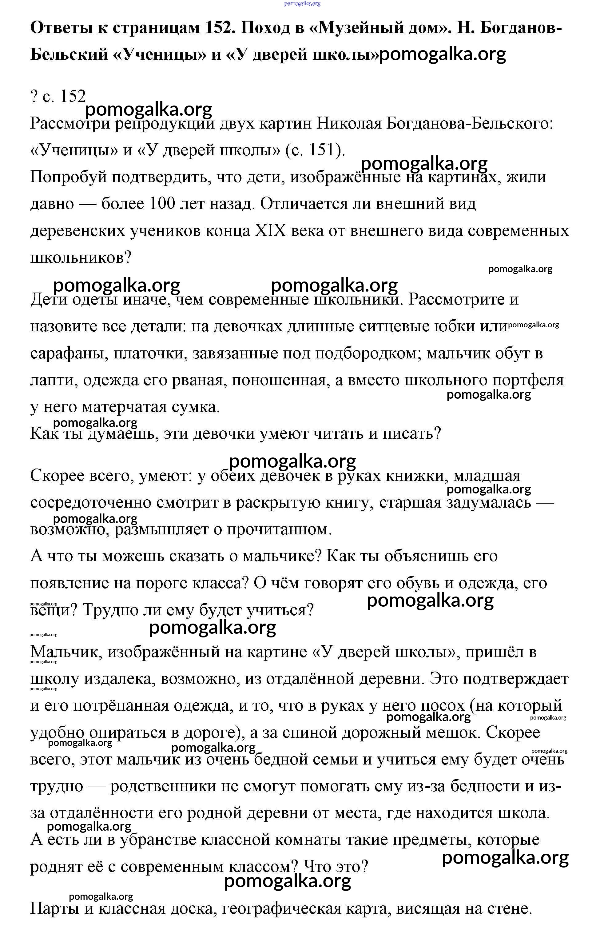 Готовые ответы - Литературное чтение 4 класс Чуракова - часть 1. страница 152