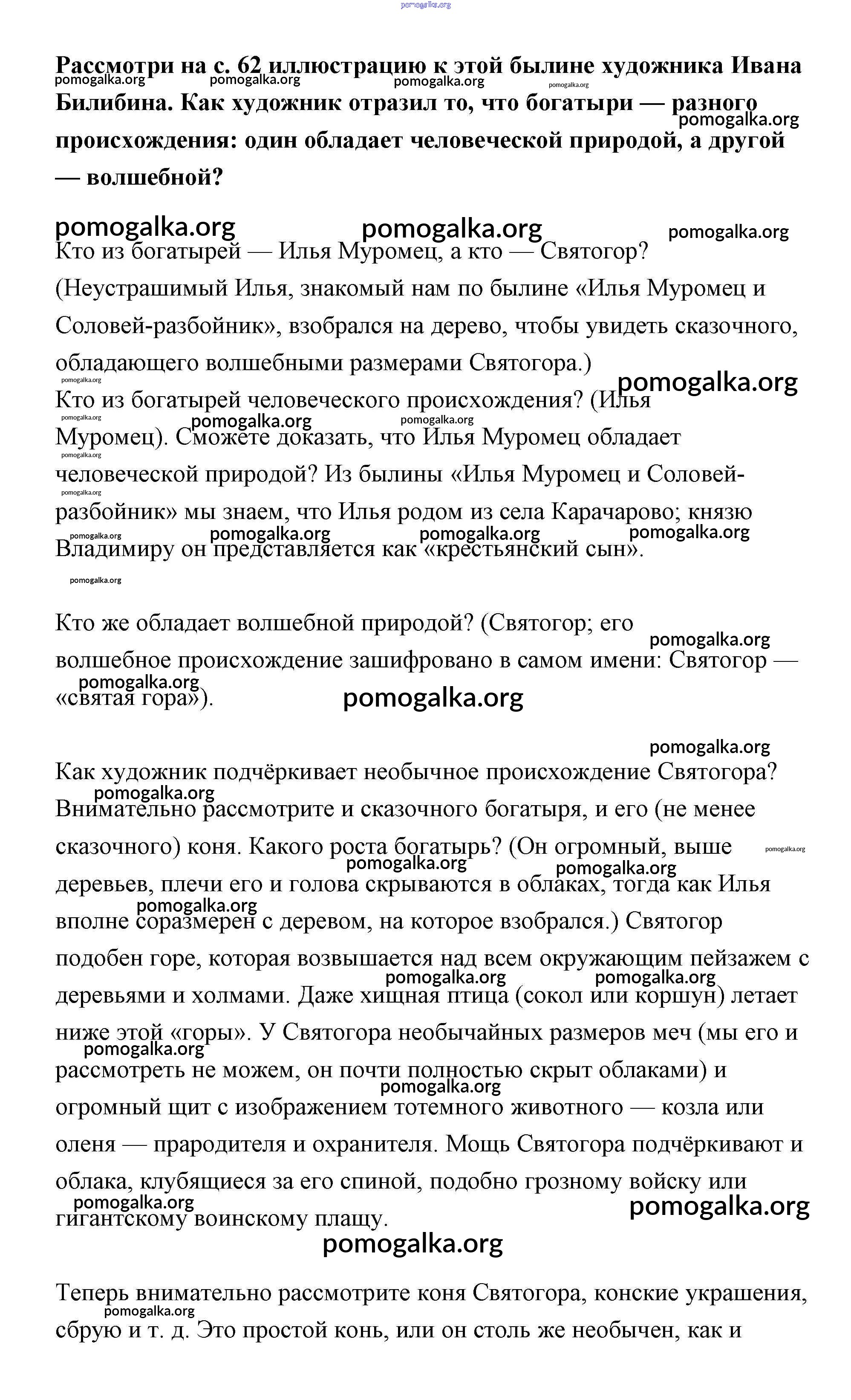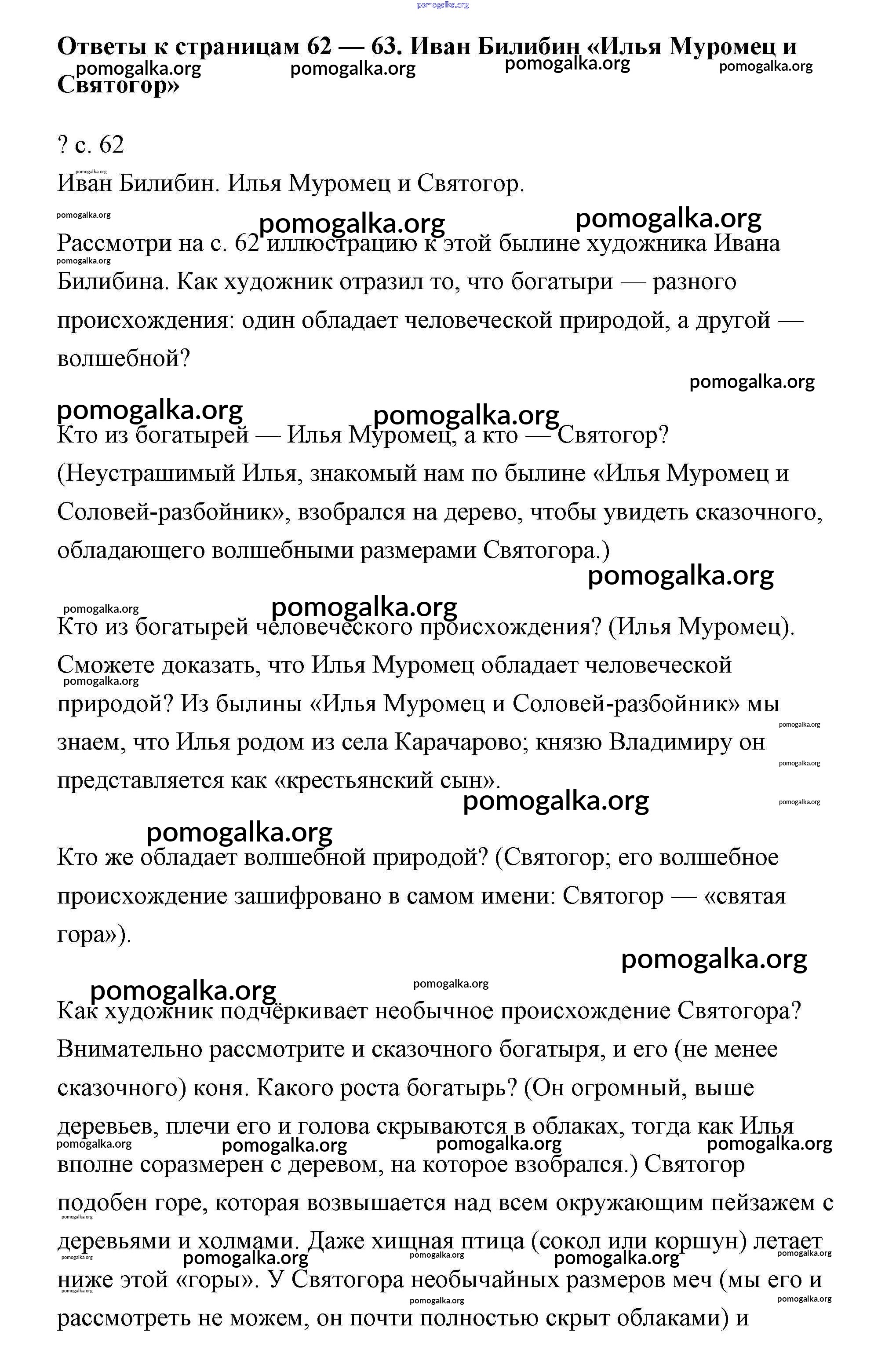Готовые ответы - Литературное чтение 4 класс Чуракова - часть 1. страница 62