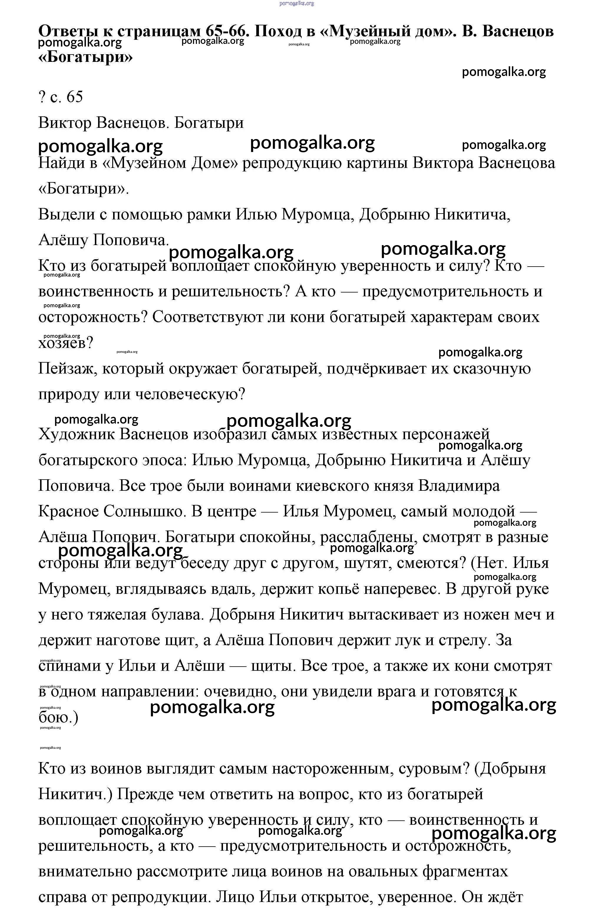 Готовые ответы - Литературное чтение 4 класс Чуракова - часть 1. страница 65