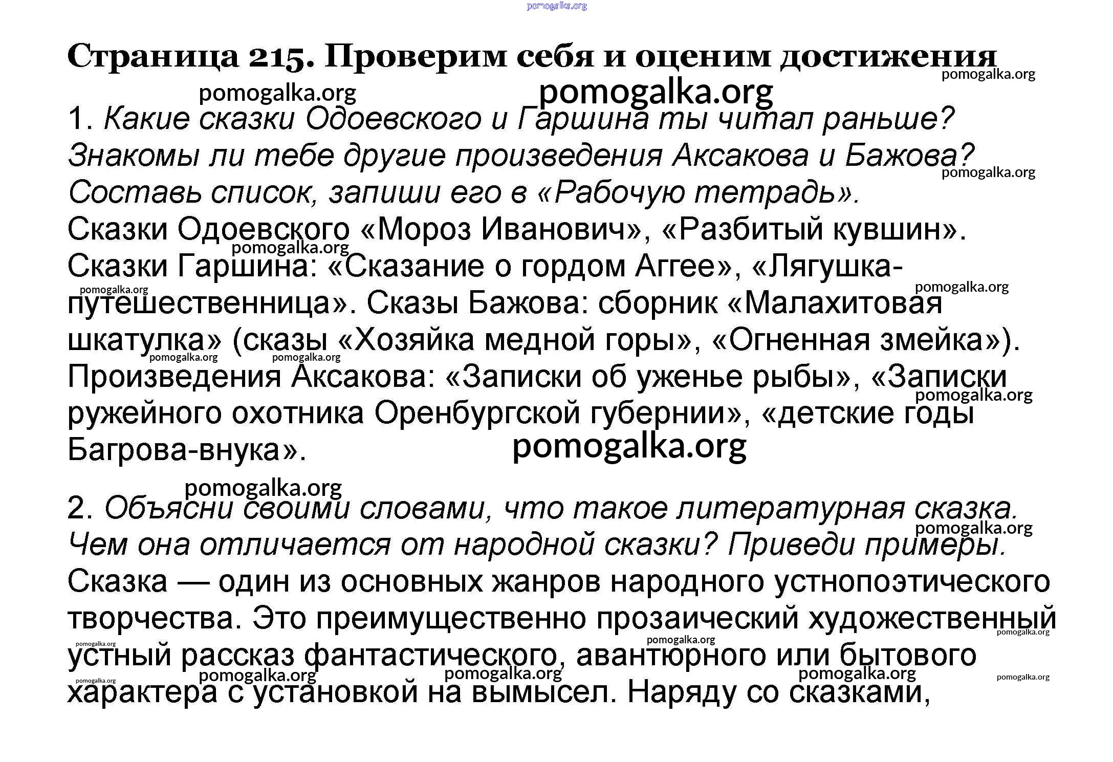 Готовые ответы - Литературное чтение 4 класс Климанова Л.Ф. - часть 1. страница 215