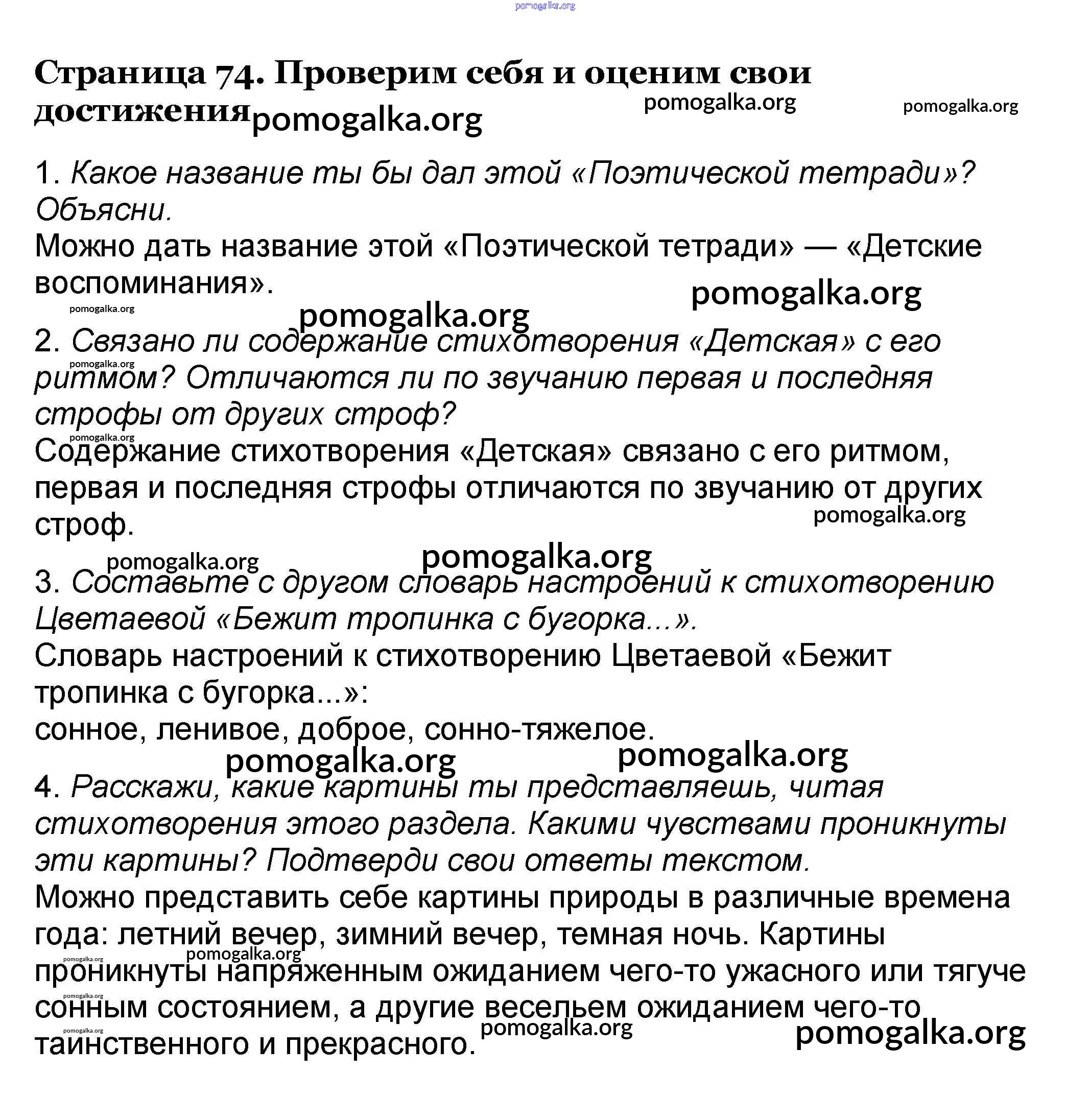 Готовые ответы - Литературное чтение 4 класс Климанова Л.Ф. - часть 2. страница 74