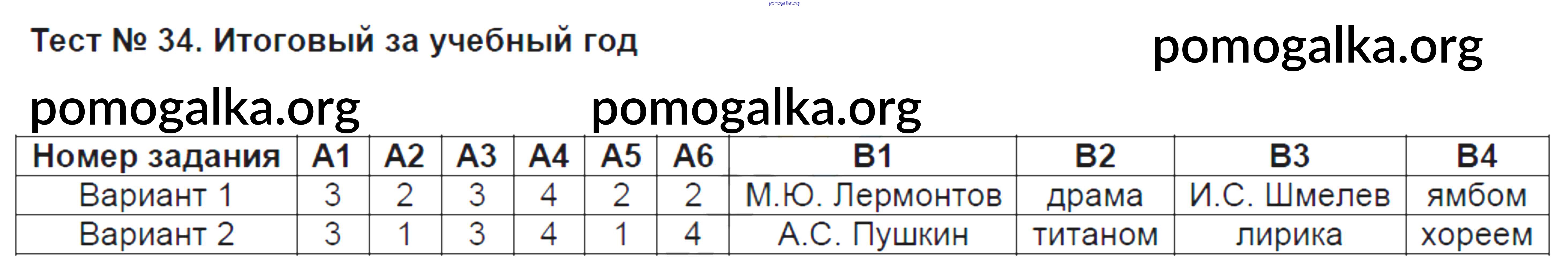 Готовые ответы - Литература 5 класс КИМ Антонова Л.В. - тест 34
