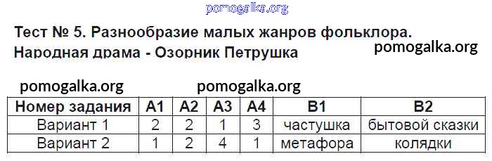 Готовые ответы - Литература 5 класс КИМ Антонова Л.В. - тест 5