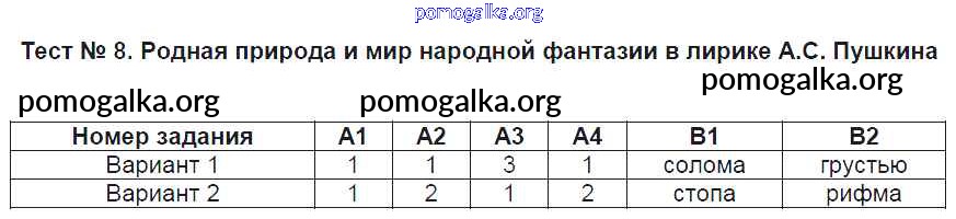 Готовые ответы - Литература 5 класс КИМ Антонова Л.В. - тест 8