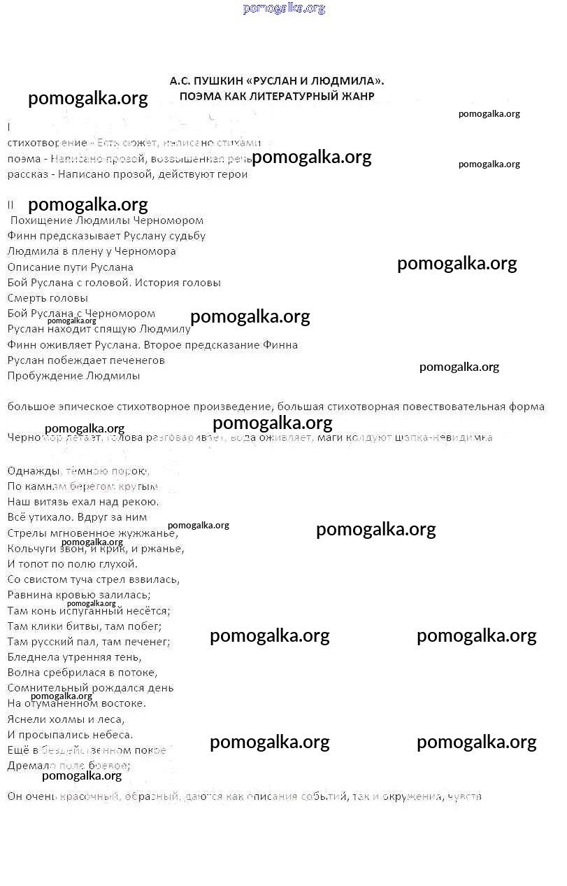 Готовые ответы - Литература 5 класс рабочая тетрадь Бунеев Р.Н. - тема А.С. Пушкин. Руслан и Людмила. Поэма как литературный жанр