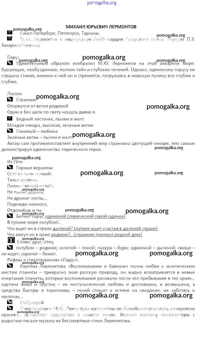 Готовые ответы - Литература 5 класс рабочая тетрадь Курдюмова Т.Ф. - часть 1. тема Михаил Юрьевич Лермонтов
