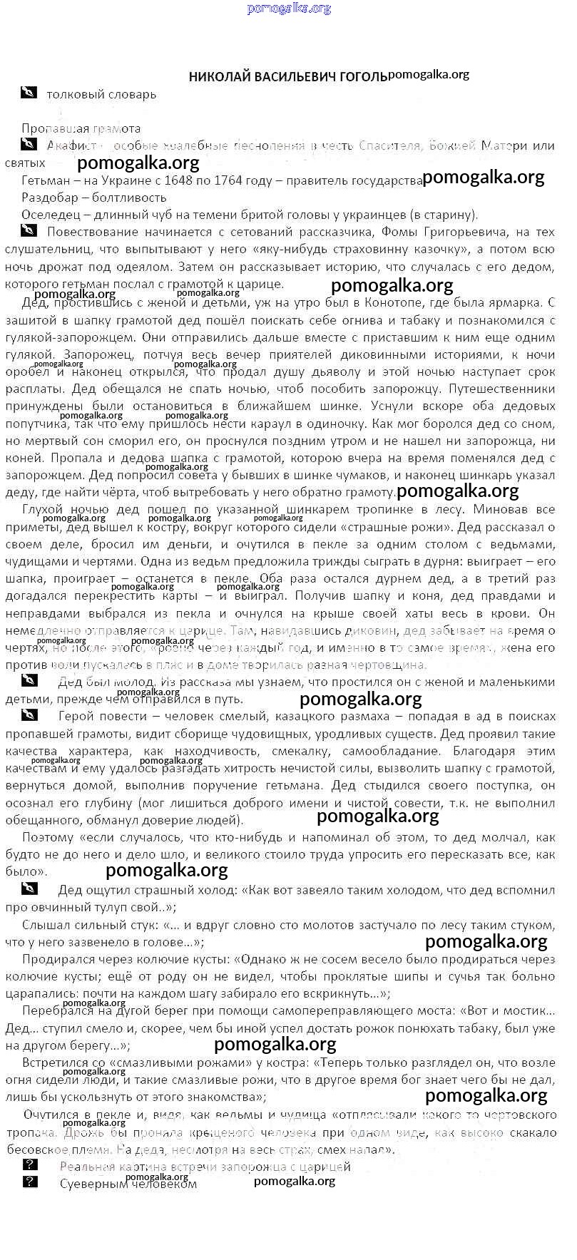 Готовые ответы - Литература 5 класс рабочая тетрадь Курдюмова Т.Ф. - часть 1. тема Николай Васильевич Гоголь