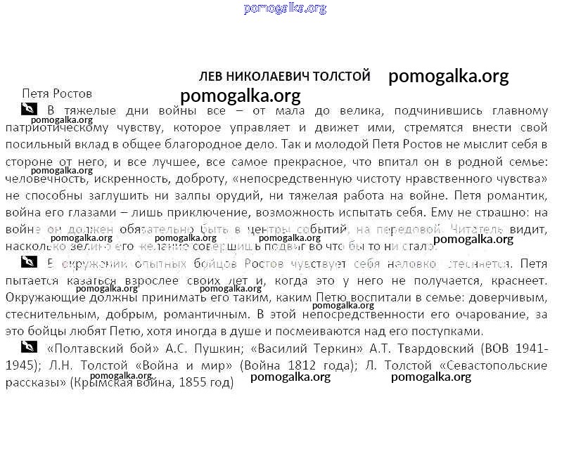 Готовые ответы - Литература 5 класс рабочая тетрадь Курдюмова Т.Ф. - часть 1. тема Лев Николаевич Толстой. Петя Ростов