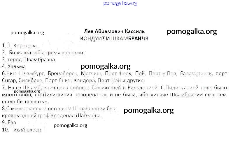 Готовые ответы - Литература 5 класс рабочая тетрадь Ланин Б.А. - Лев Абрамович Кассиль Кондуит и Швамбрания часть 2 1