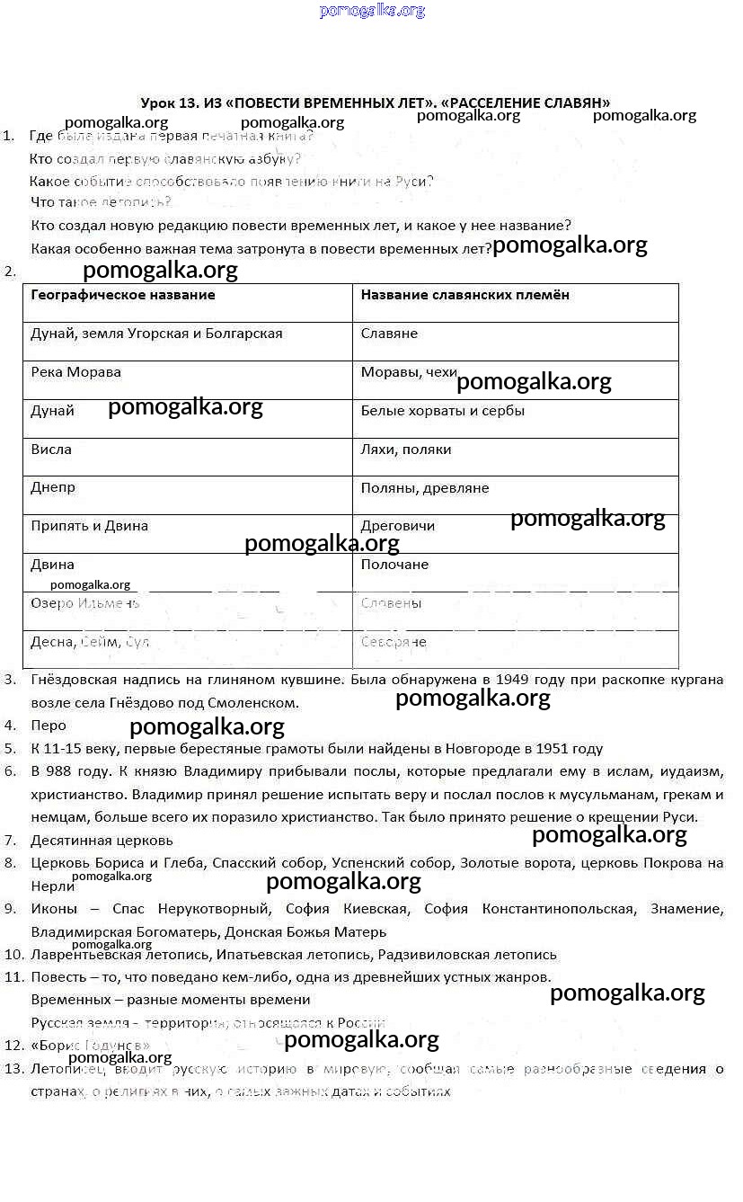 Готовые ответы - Литература 5 класс рабочая тетрадь Соловьева Ф.Е. - урок 13
