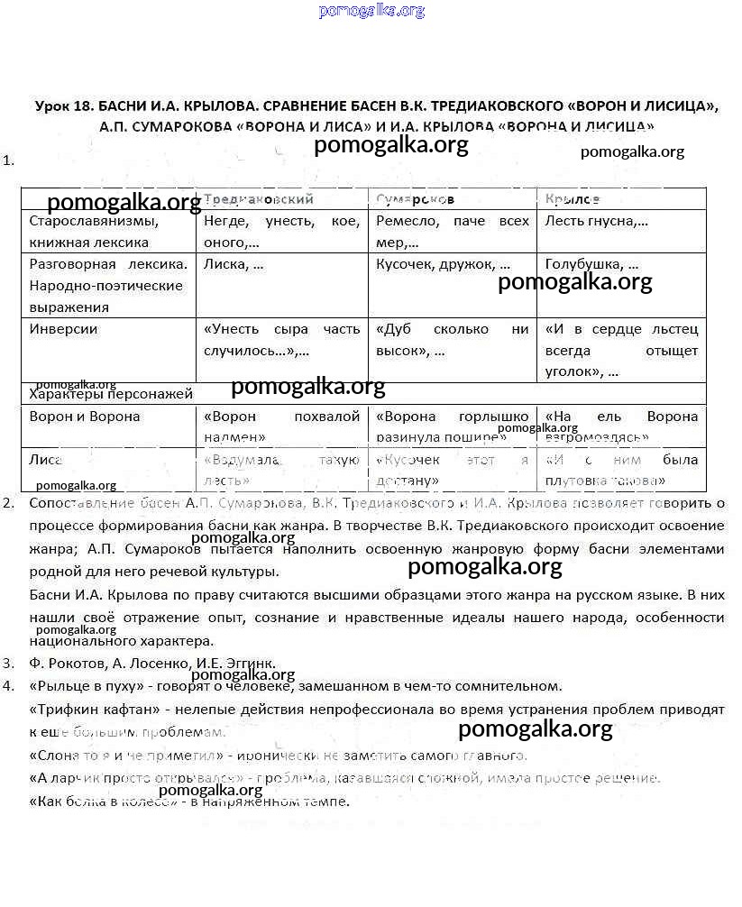 Готовые ответы - Литература 5 класс рабочая тетрадь Соловьева Ф.Е. - урок 18
