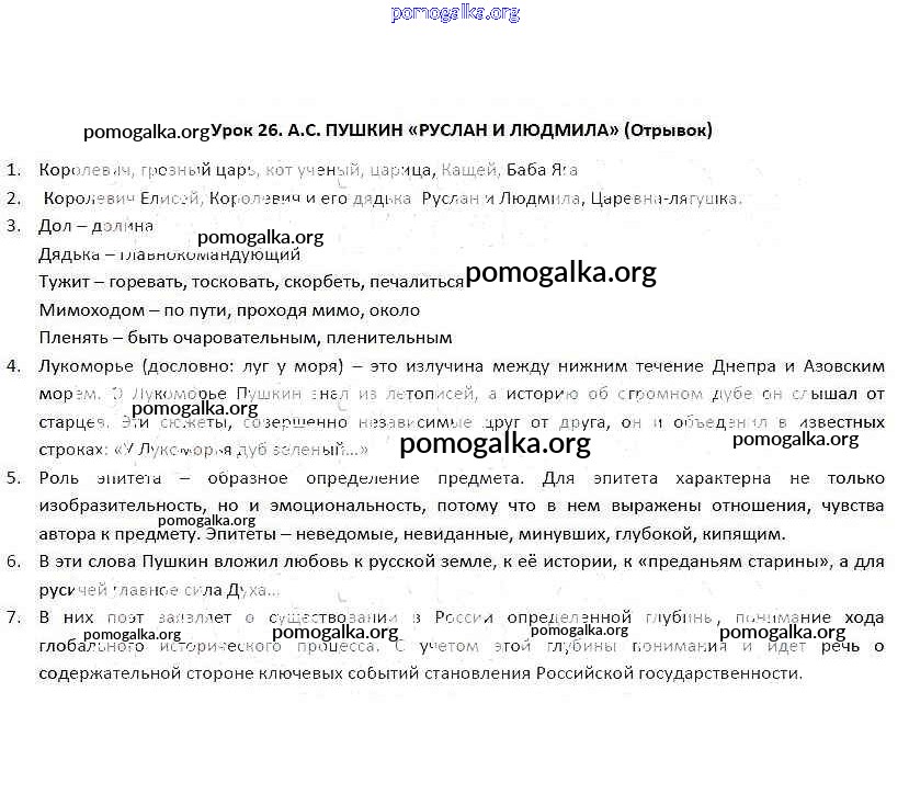 Готовые ответы - Литература 5 класс рабочая тетрадь Соловьева Ф.Е. - урок 26