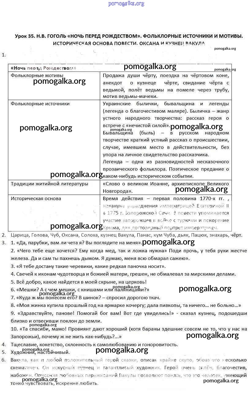 Готовые ответы - Литература 5 класс рабочая тетрадь Соловьева Ф.Е. - урок 35