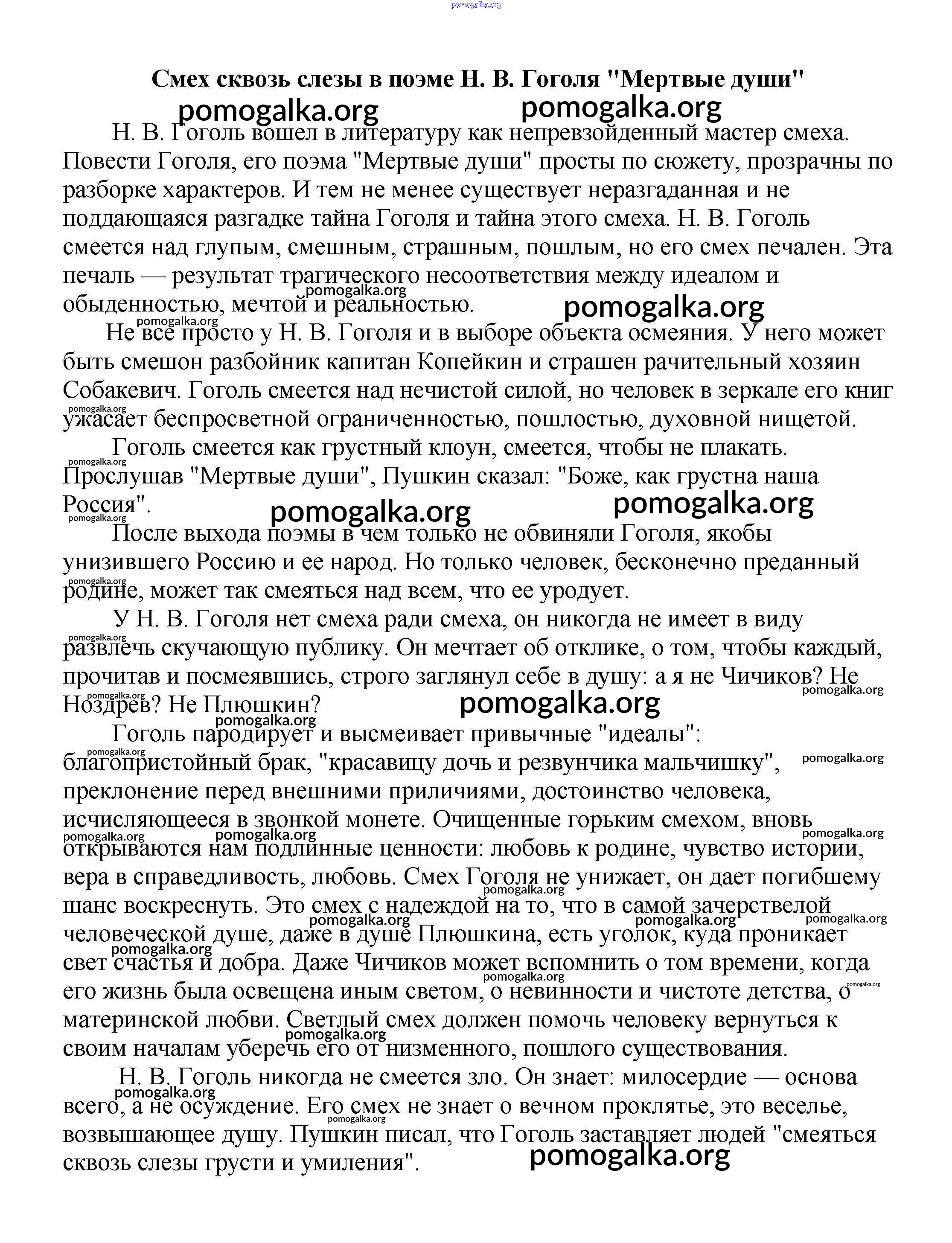 Готовые ответы - Сочинения по русской литературе, зарубежной литературе 5-10 классы Белик Э. В. - сочинения по русской литературе 9 класс Смех сквозь слезы в поэме Н. В. Гоголя "Мертвые души"