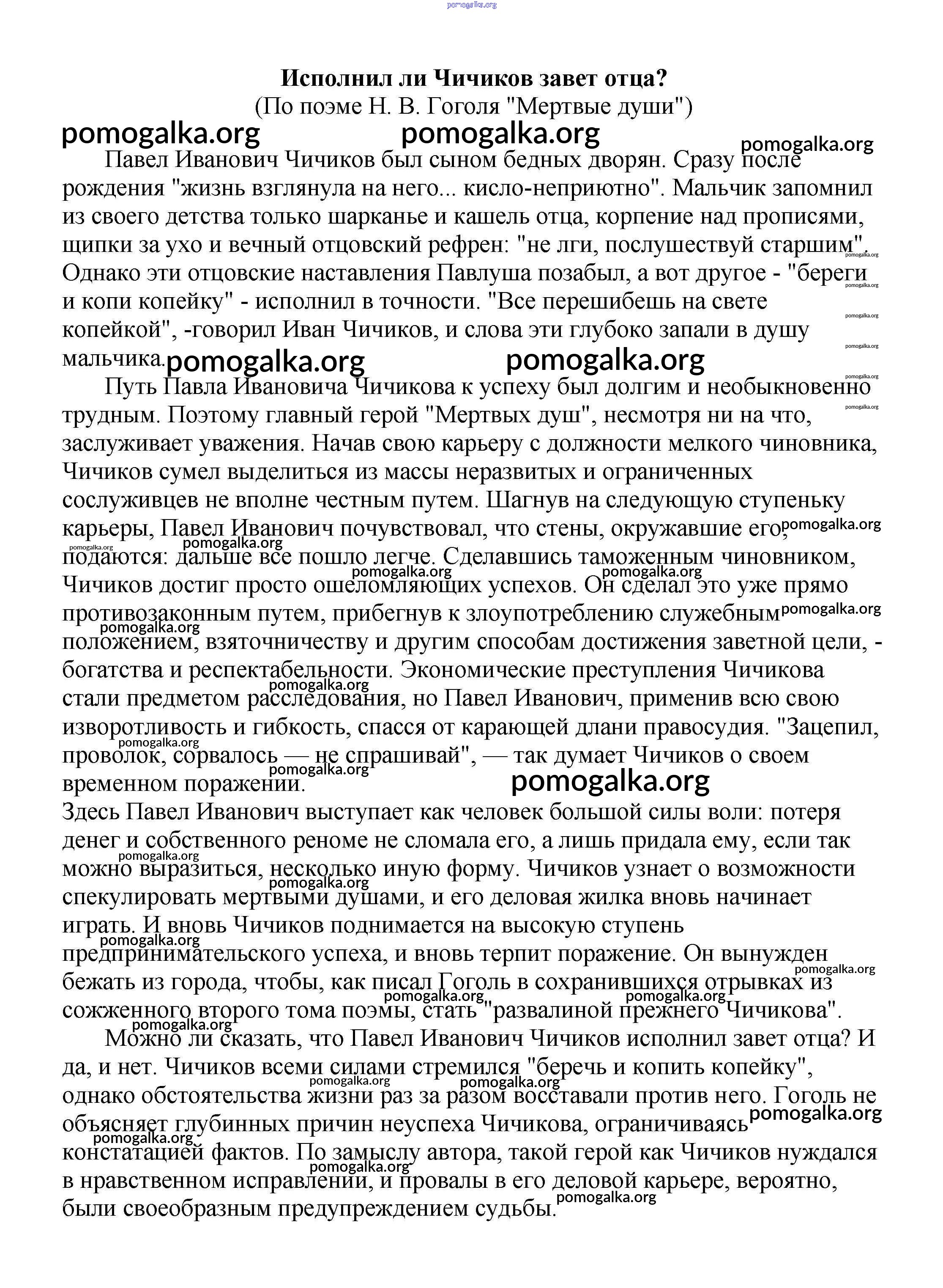 Готовые ответы - Сочинения по русской литературе, зарубежной литературе 5-10 классы Белик Э. В. - сочинения по русской литературе 9 класс Исполнил ли Чичиков завет отца? (По поэме Н. В. Гоголя "Мертвые души")