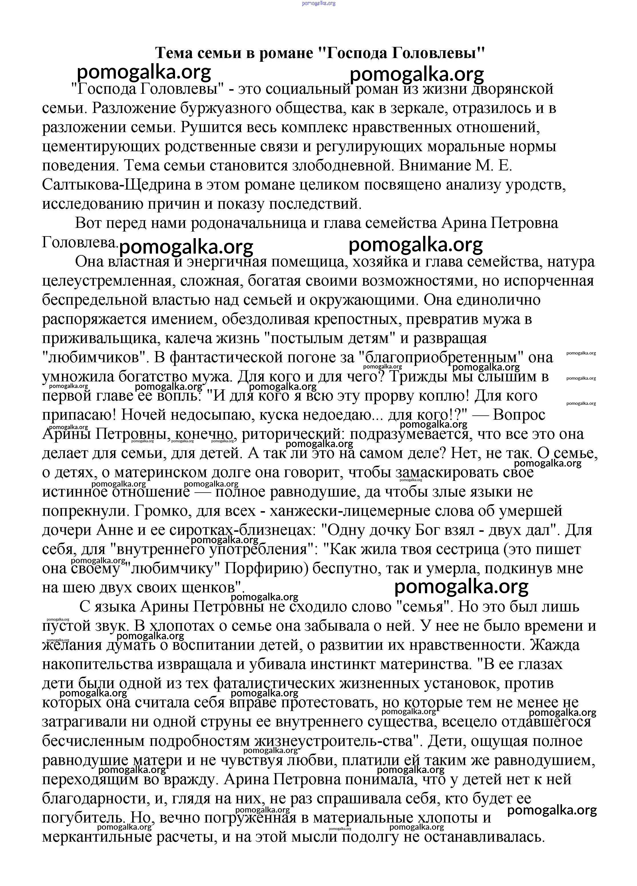 Готовые ответы - Сочинения по русской литературе, зарубежной литературе 5-10 классы Белик Э. В. - сочинения по русской литературе 10 класс Тема семьи в романе "Господа Головлевы"