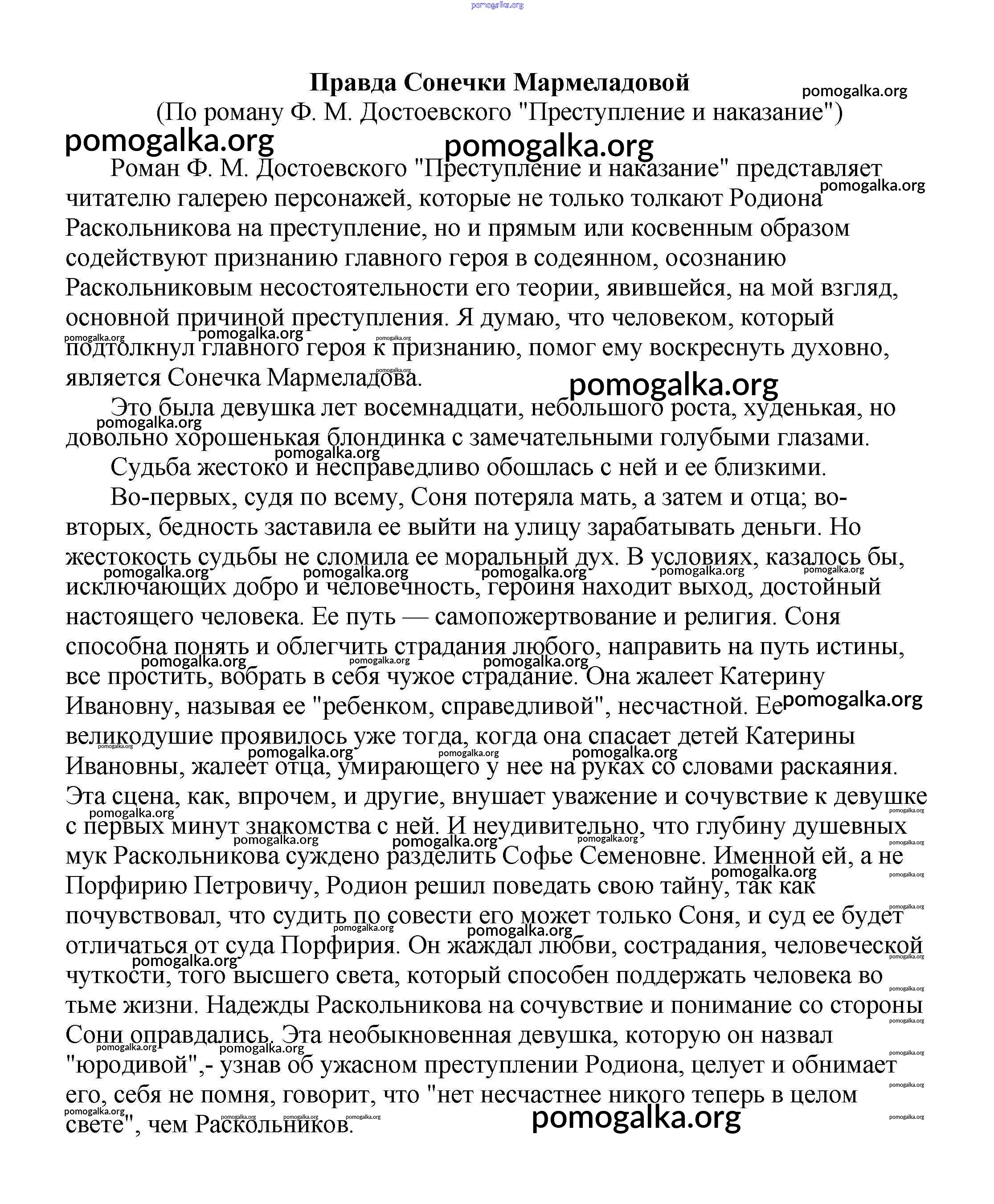 Готовые ответы - Сочинения по русской литературе, зарубежной литературе 5-10 классы Белик Э. В. - сочинения по русской литературе 10 класс Правда Сонечки Мармеладовой (По роману Ф. М. Достоевского "Преступление и наказание")
