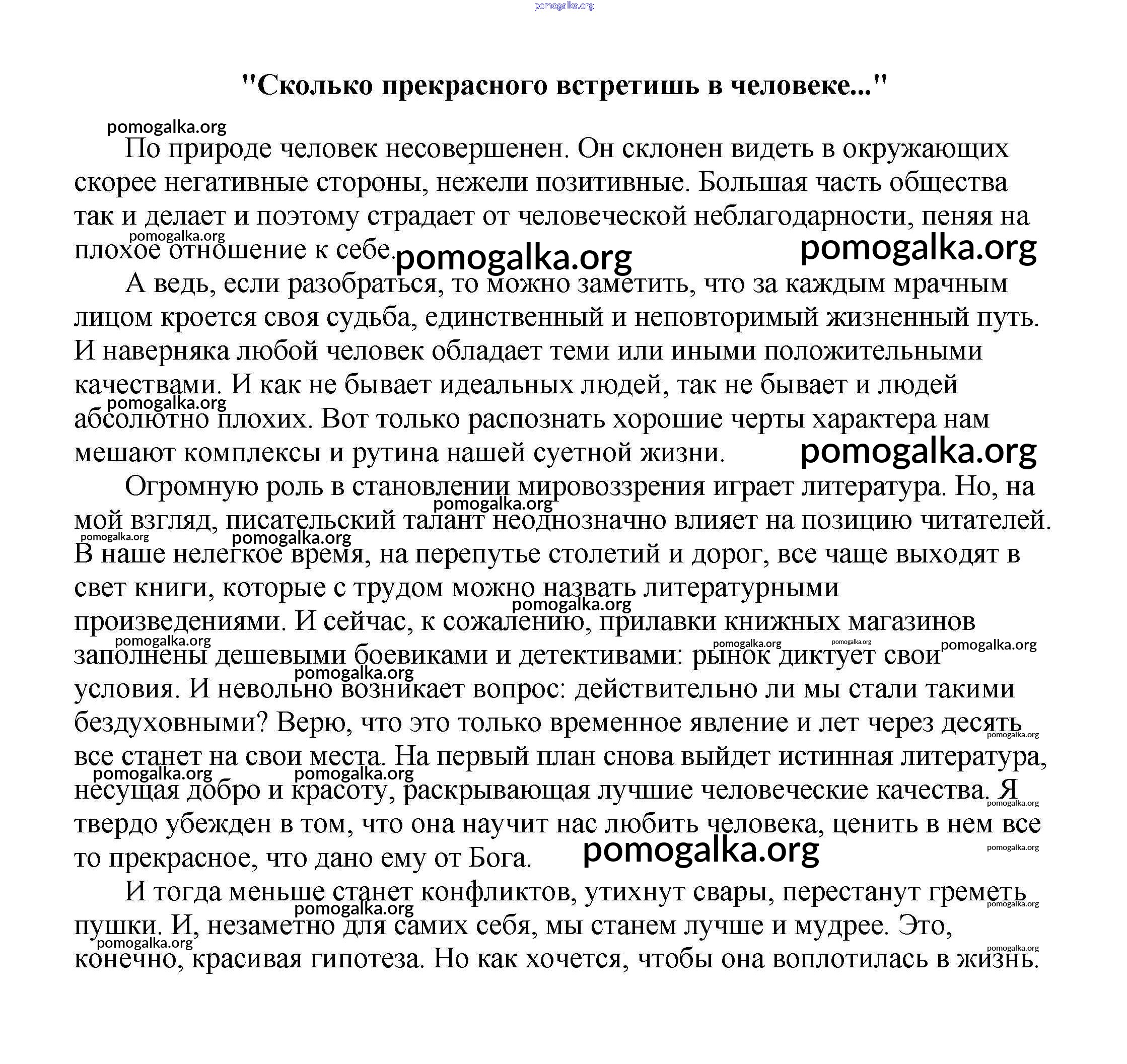 Готовые ответы - Сочинения по русской литературе, зарубежной литературе 5-10 классы Белик Э. В. - сочинения на свободную тему 10 класс "Сколько прекрасного встретишь в человеке..."