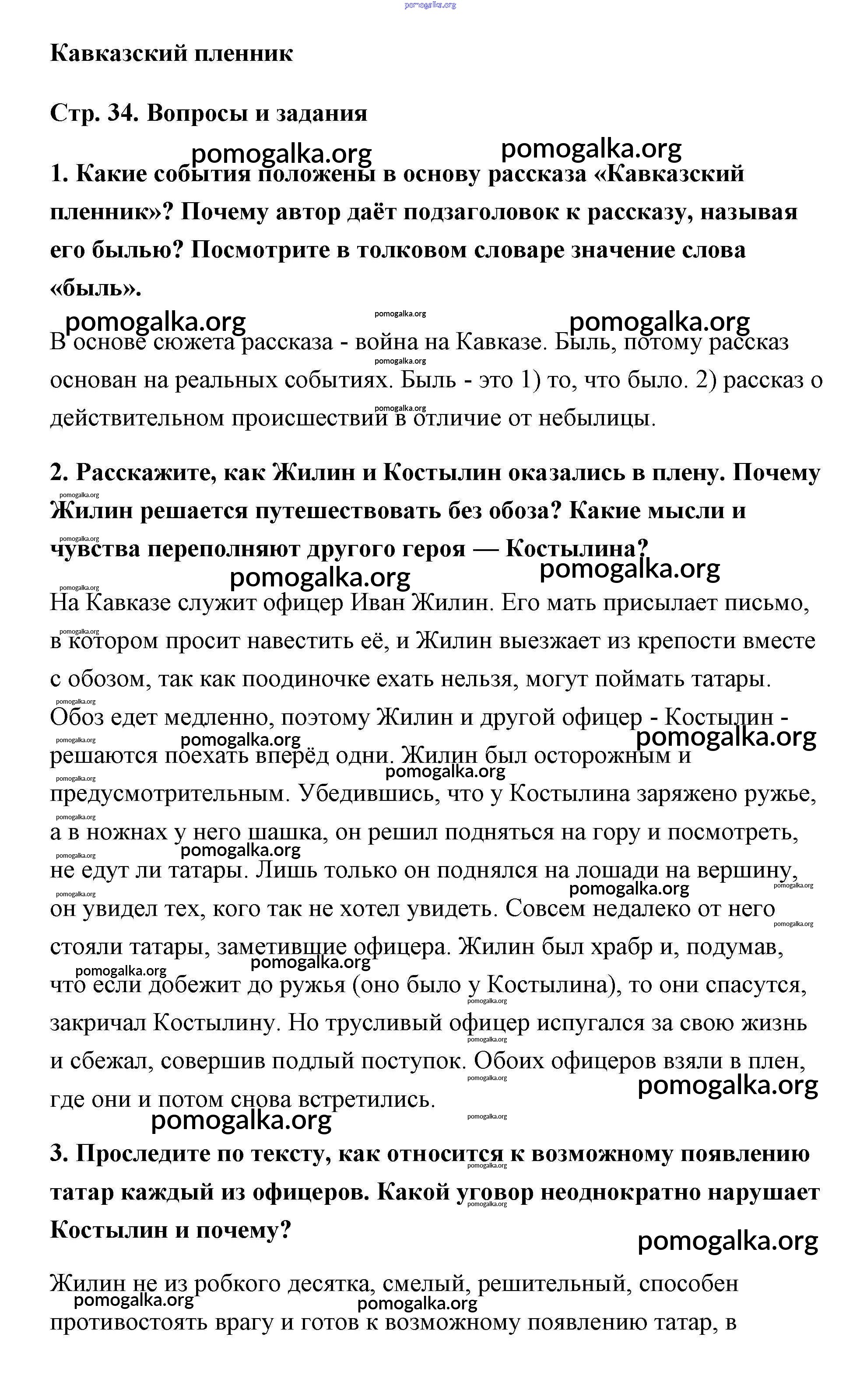 Готовые ответы - Литература 5 класс Чертов - Л.Н. Толстой часть 2 страница 34