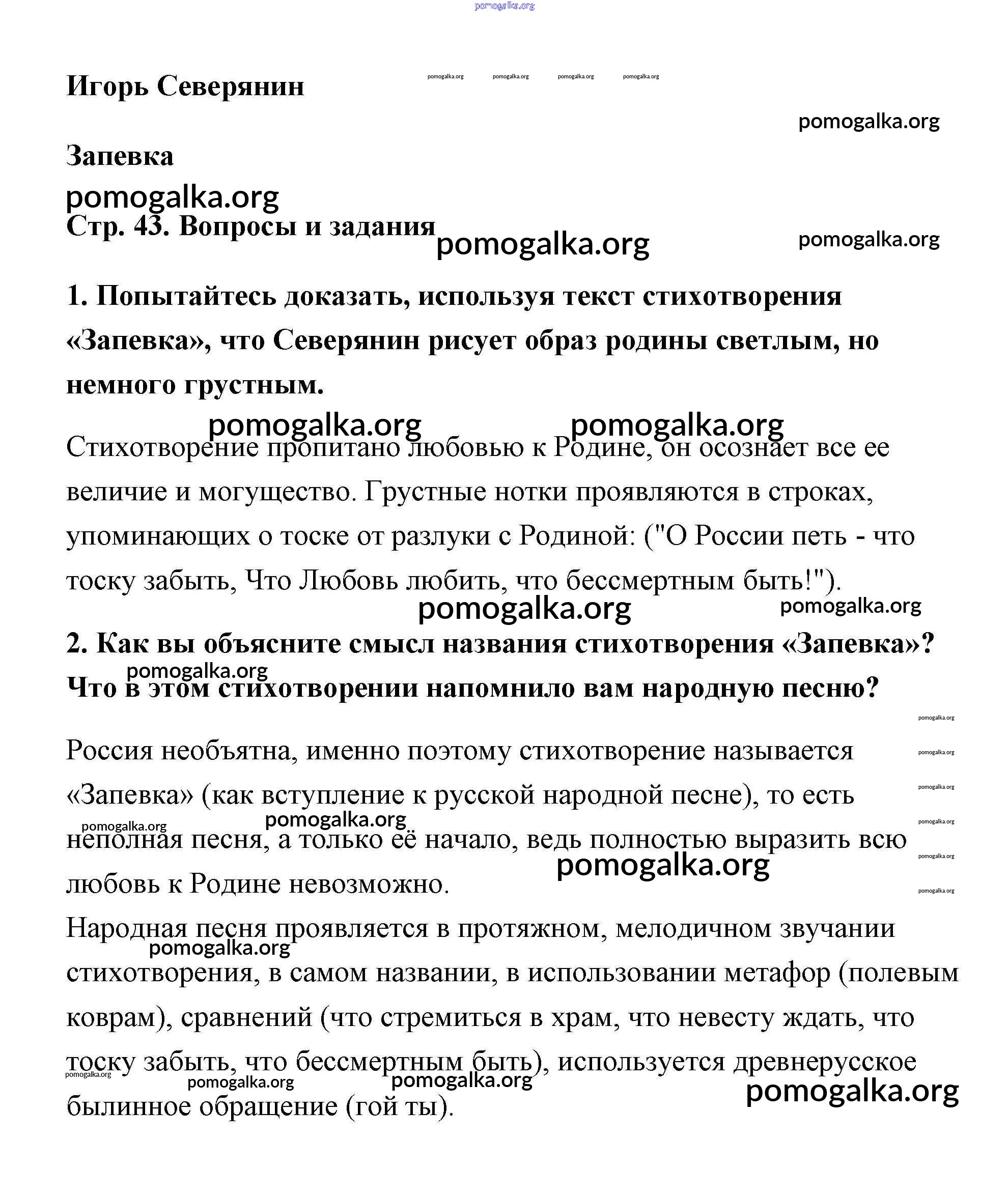 Готовые ответы - Литература 5 класс Чертов - И. Северянин часть 2 страница 43