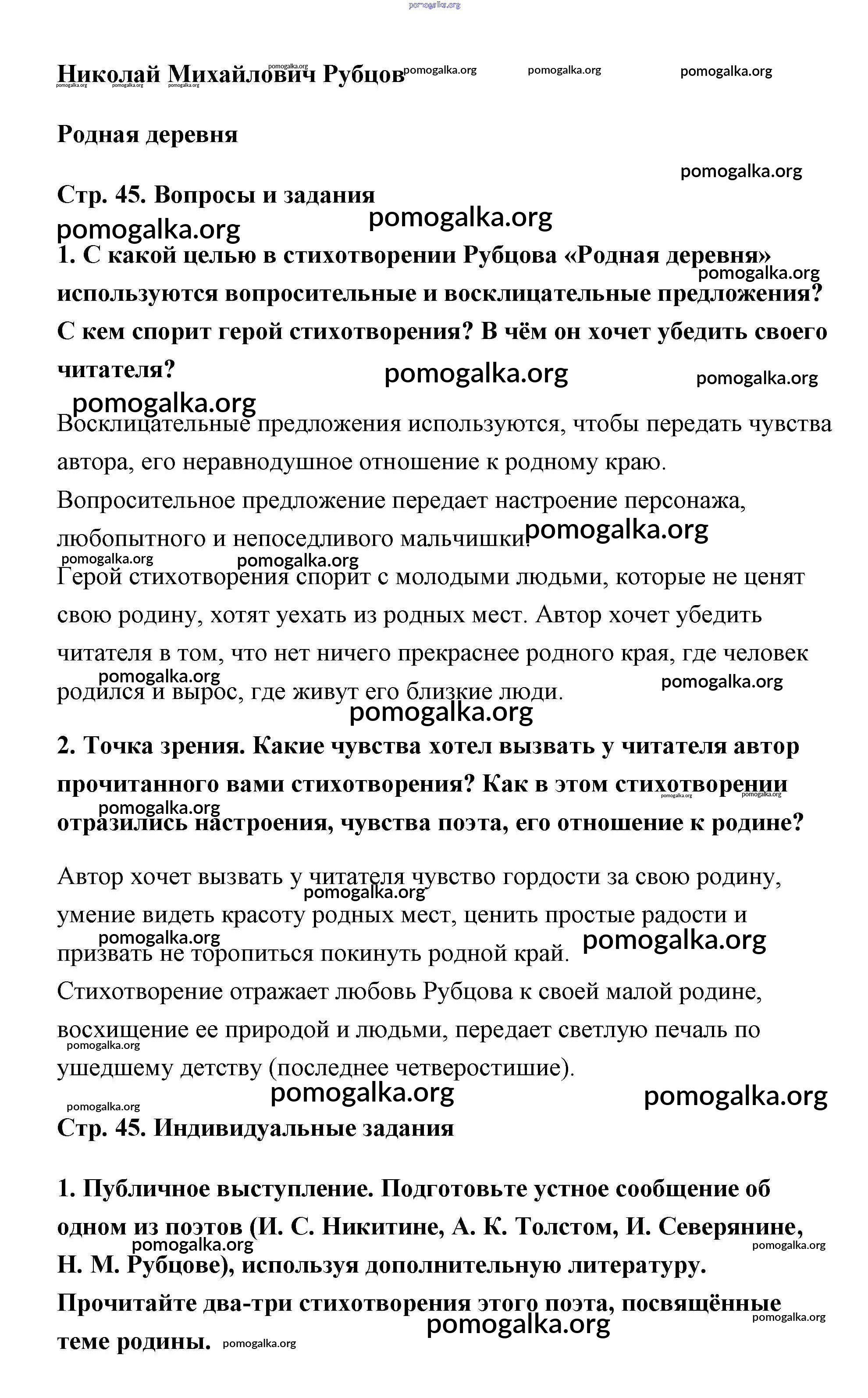 Готовые ответы - Литература 5 класс Чертов - Н.М. Рубцов часть 2 страница 45