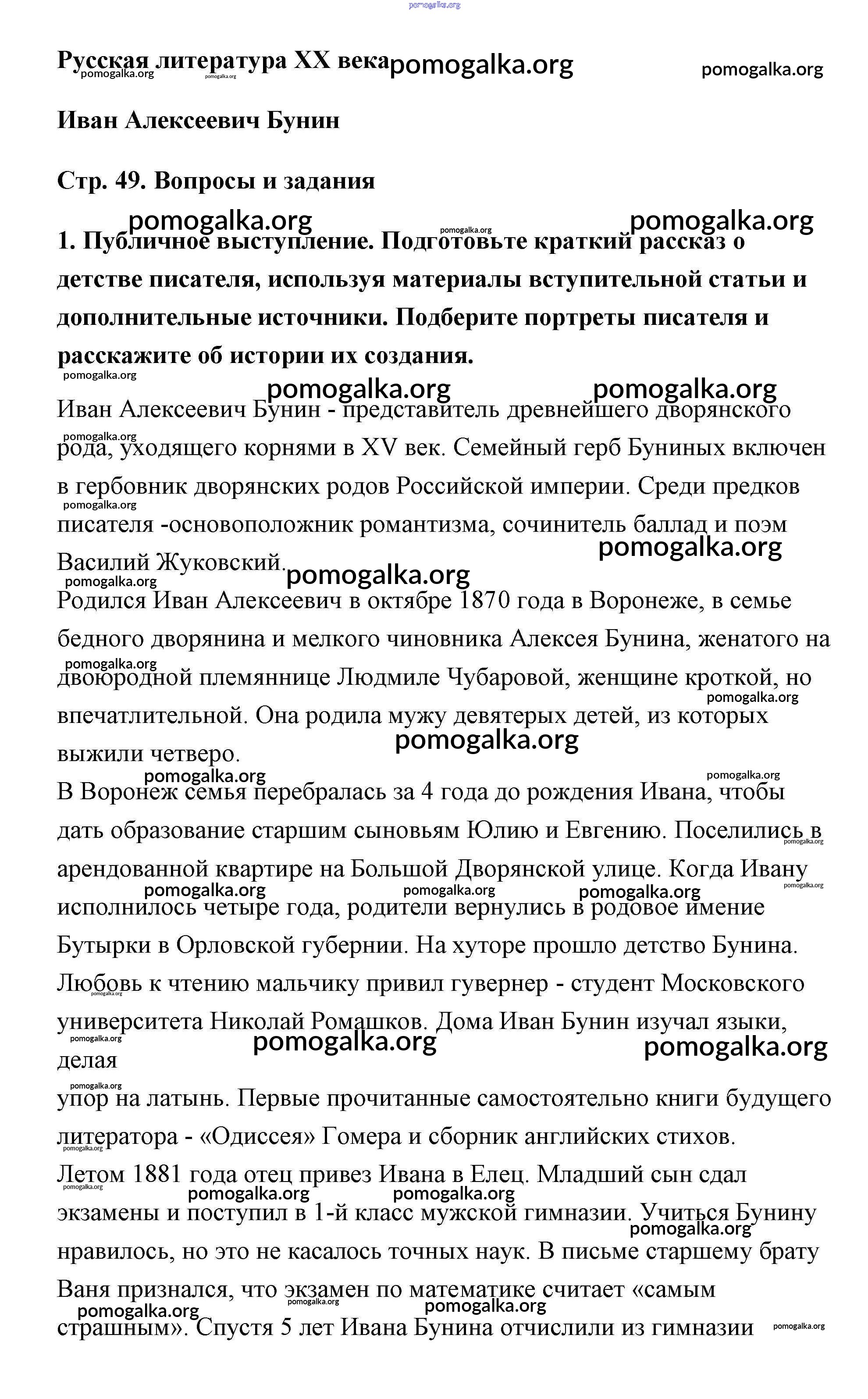 Готовые ответы - Литература 5 класс Чертов - И.А. Бунин часть 2 страница 49