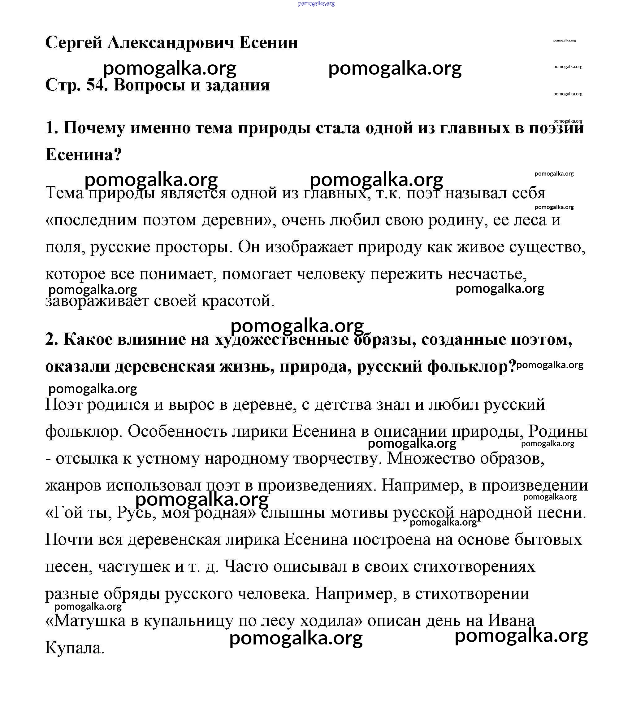 Готовые ответы - Литература 5 класс Чертов - С.А. Есенин часть 2 страница 54